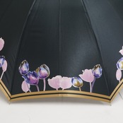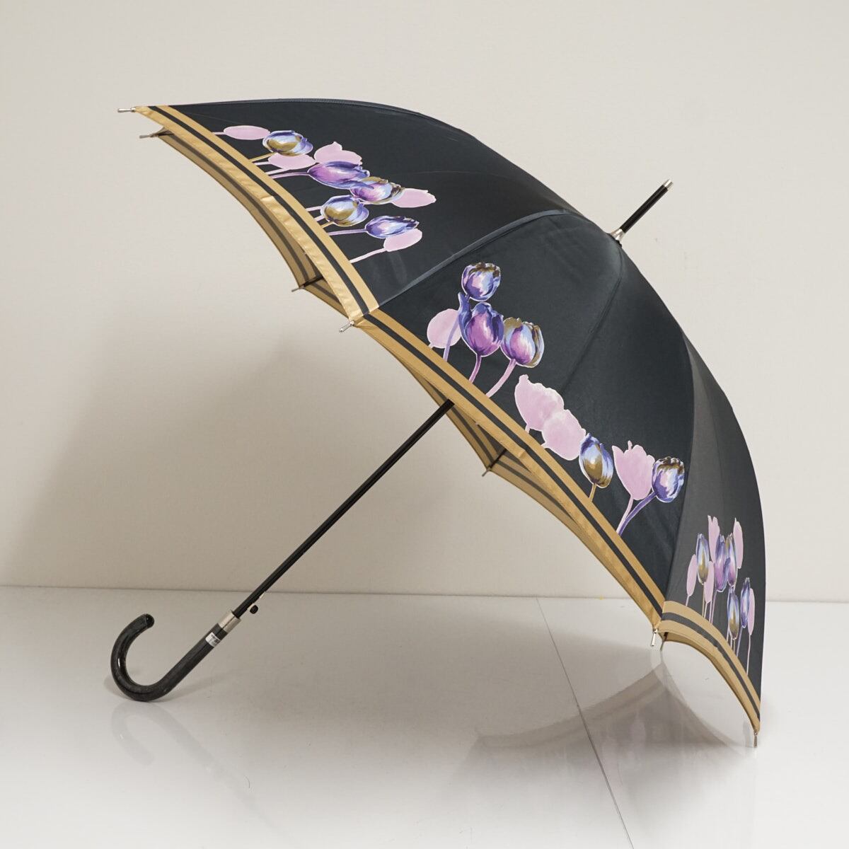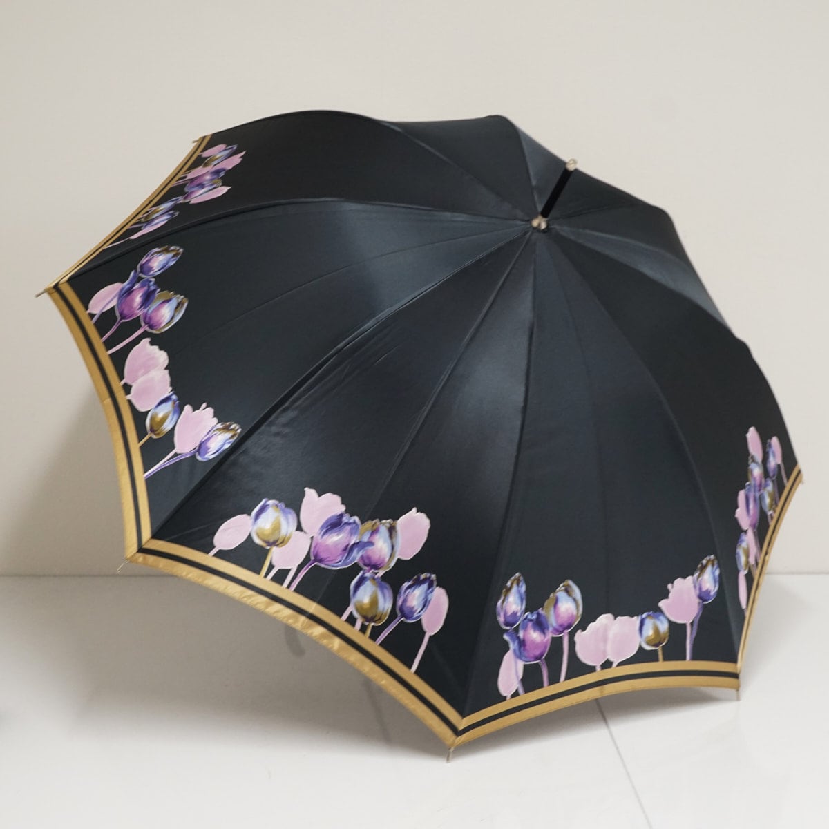 耐風傘 CHARLES JOURDAN シャルルジョルダン USED品 チューリップ フラワー 花 ブラック ジャンプ 60cm A3302