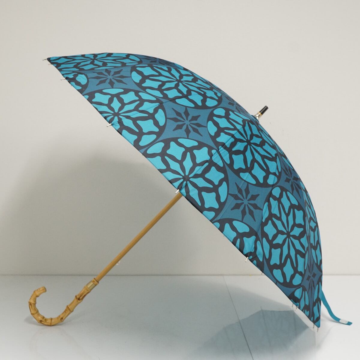 傘 HOKUSAI GRAPHIC 北斎グラフィック USED品 蓮七宝 翠 16本骨 和柄テキスタイル 和風モダン グラス骨 多間 男女兼用 60cm A3303