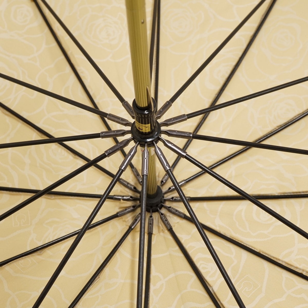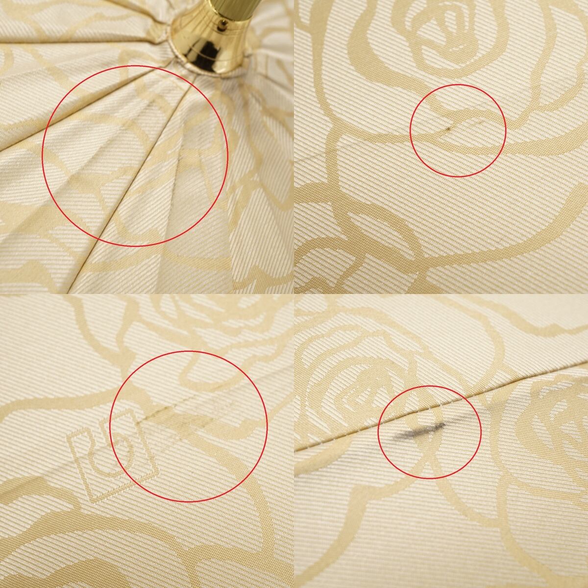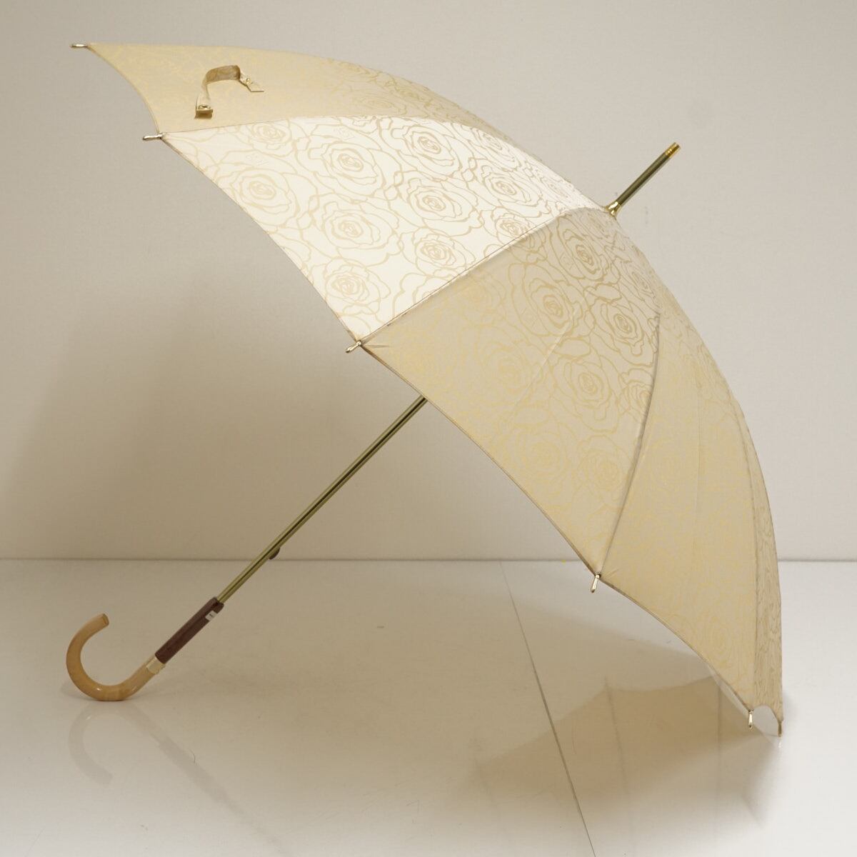 傘 GHERARDINI ゲラルディーニ USED美品 フラワー 薔薇 Gロゴ ライトベージュ グラス骨 多間 12本骨 58cm S3293