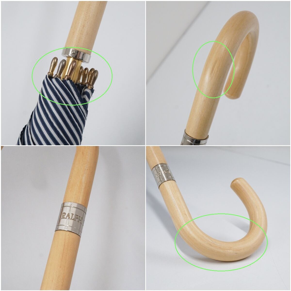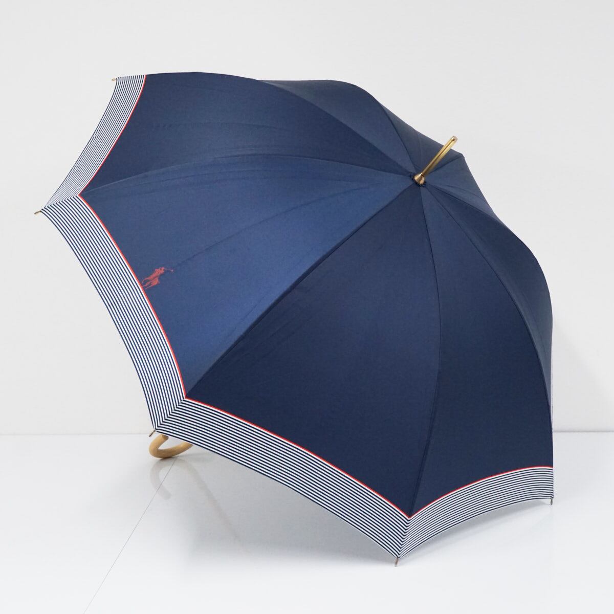 傘 Polo Ralph Lauren ポロラルフローレン USED美品 ネイビー ボーダー ポロ 高級 60cm A3290