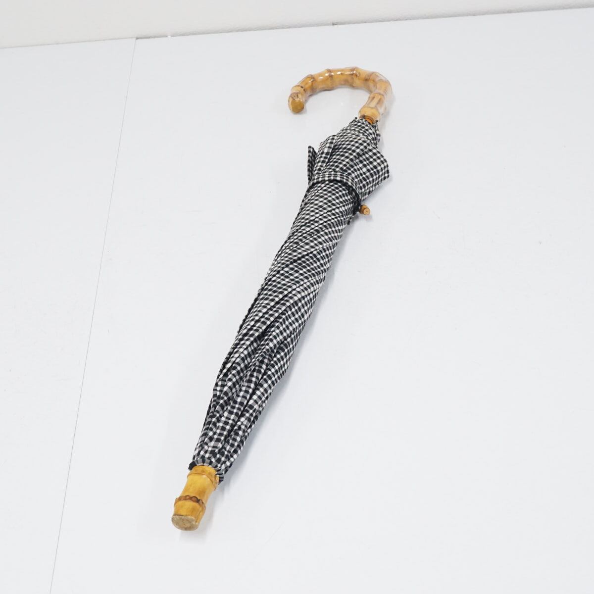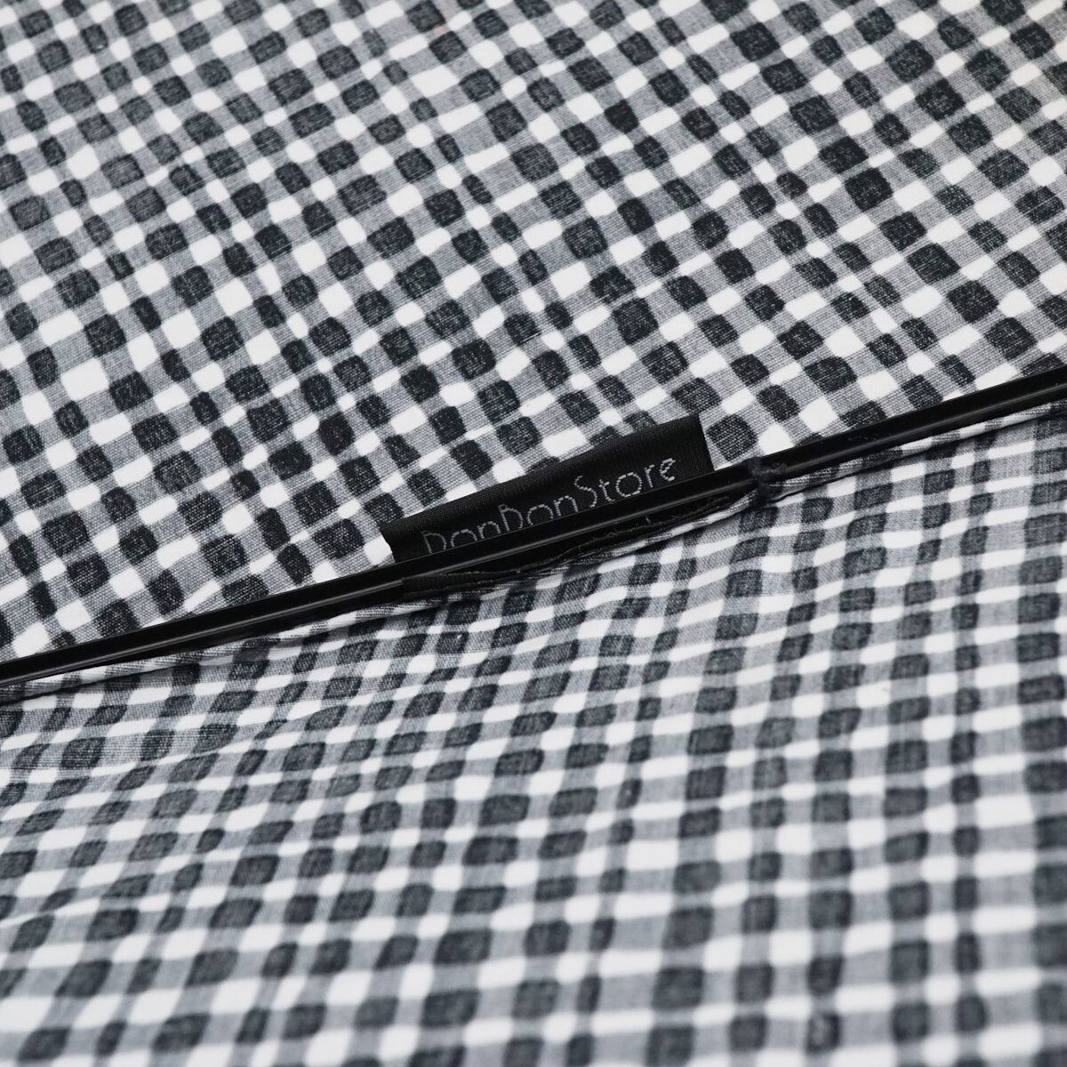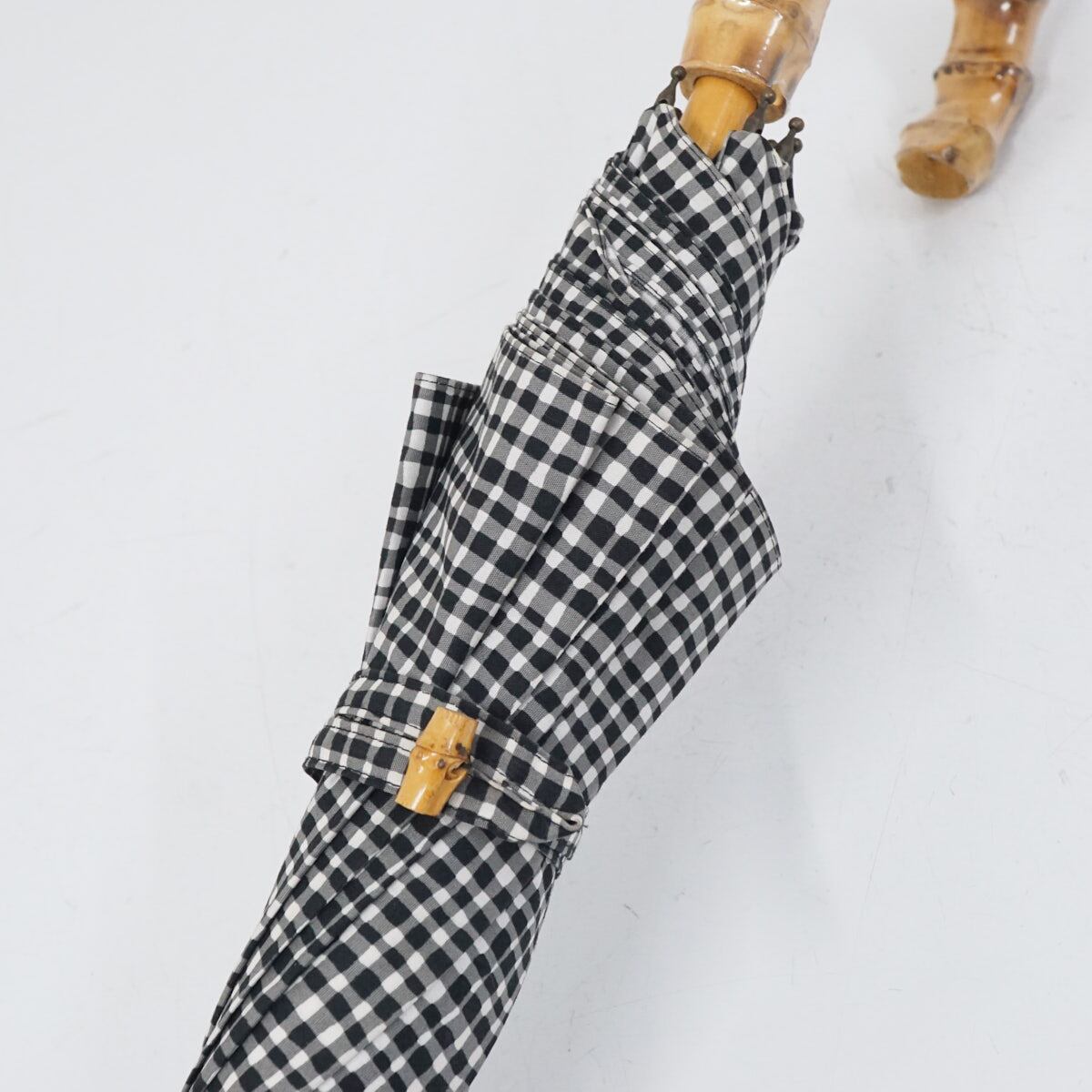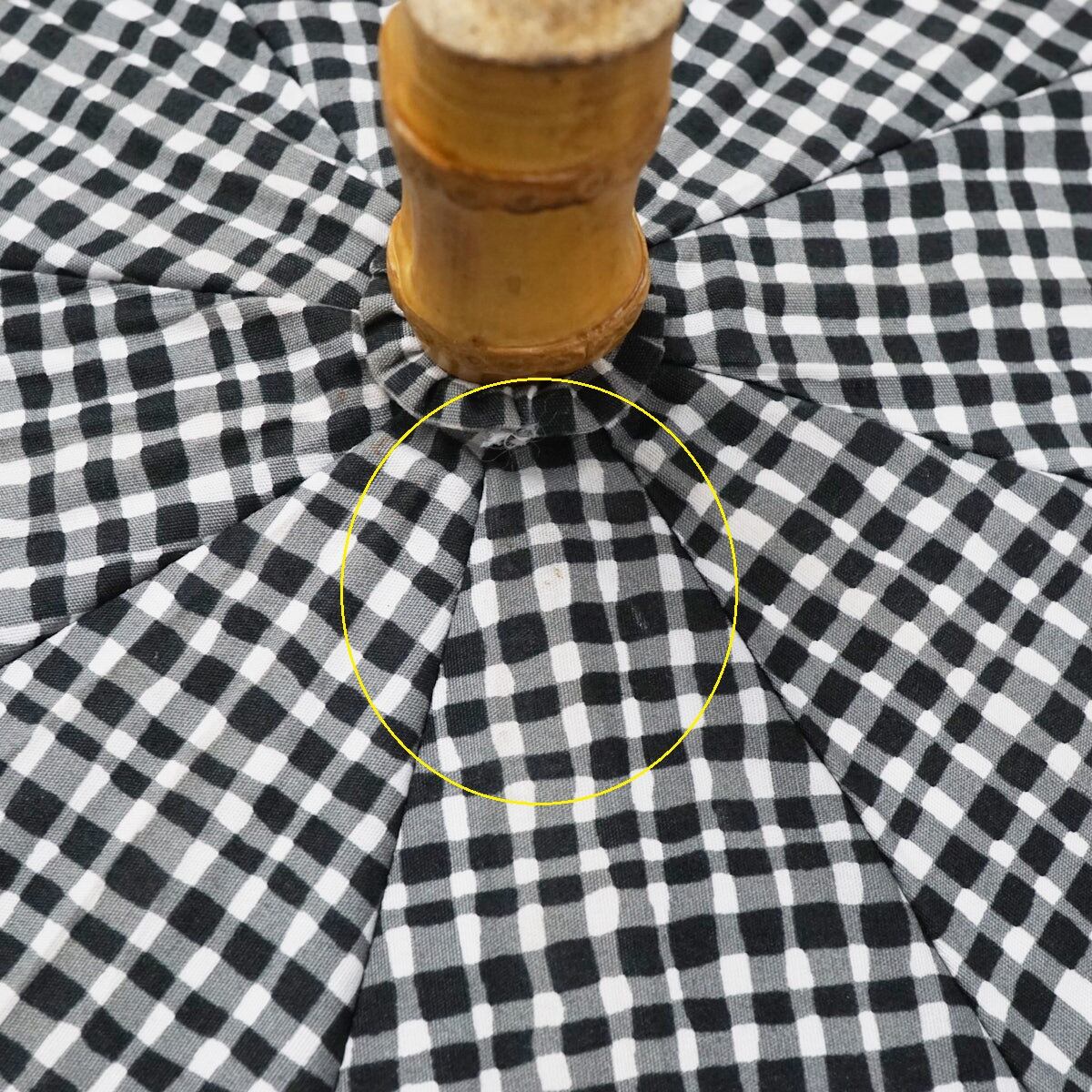 晴雨兼用傘 BonBon store ボンボンストア USED美品 ドローイングチェック ブラック×ホワイト 寒竹 55cm S3291