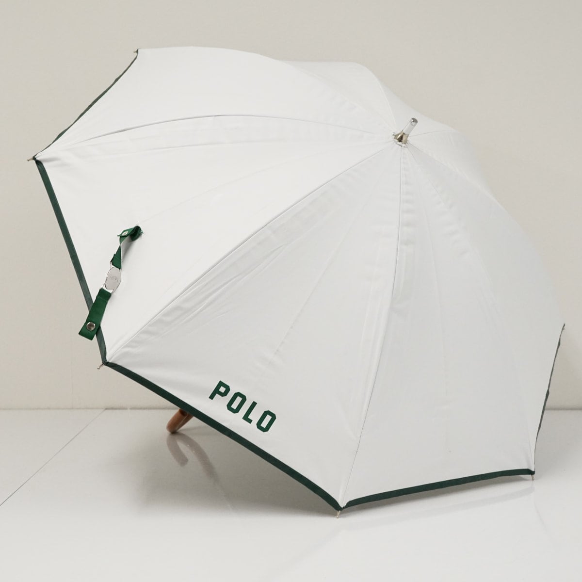 晴雨兼用日傘 POLO RALPH LAUREN ポロラルフローレン USED美品 ポロベア ホワイト×グリーン 一級遮光 50cm S3315