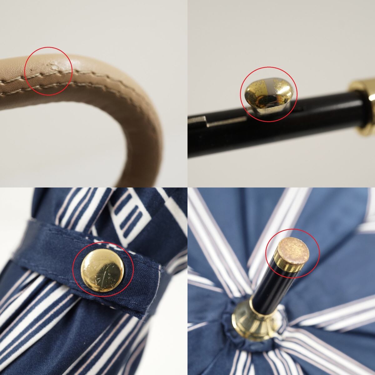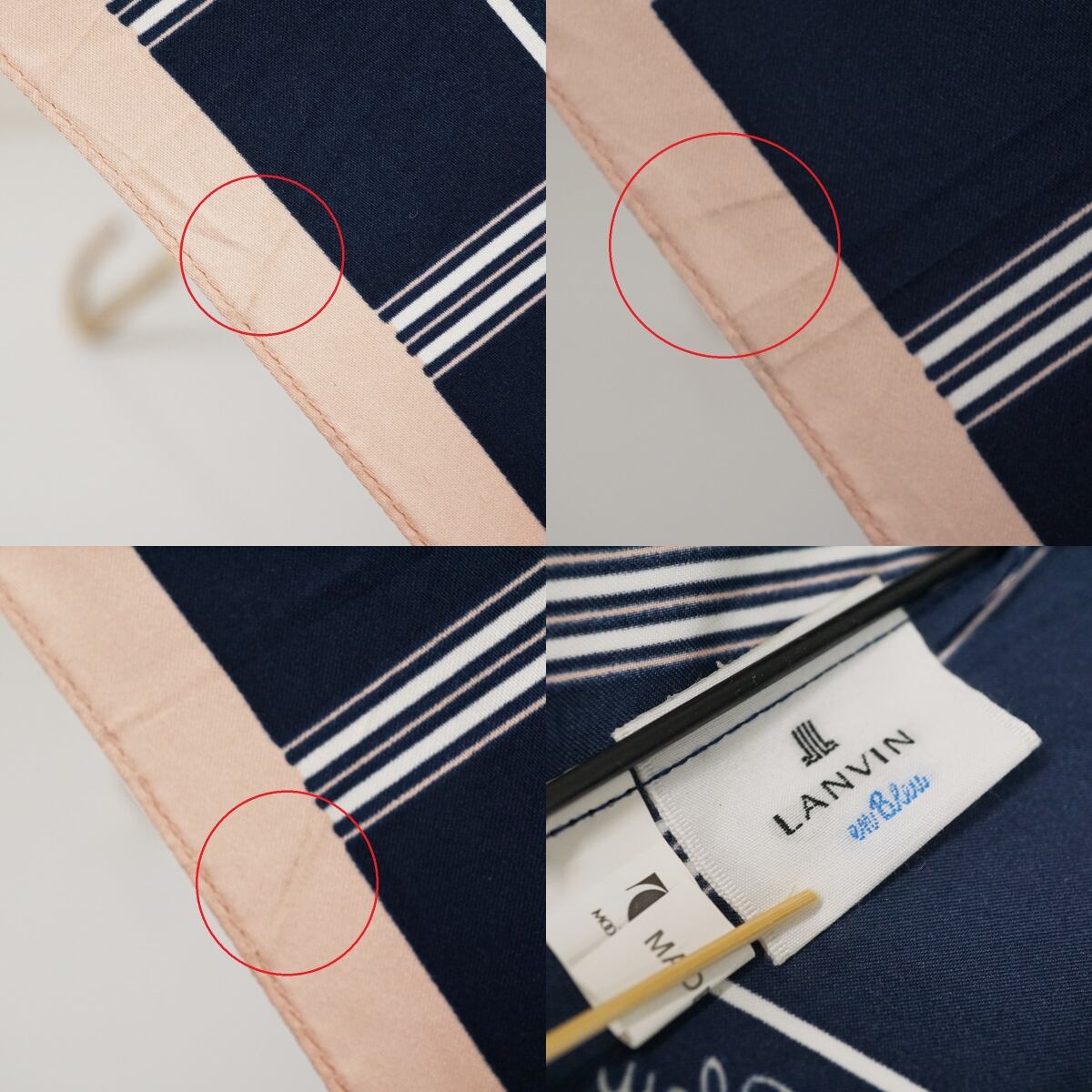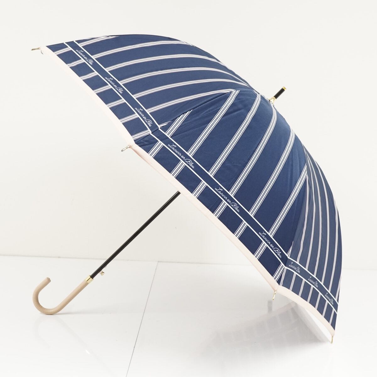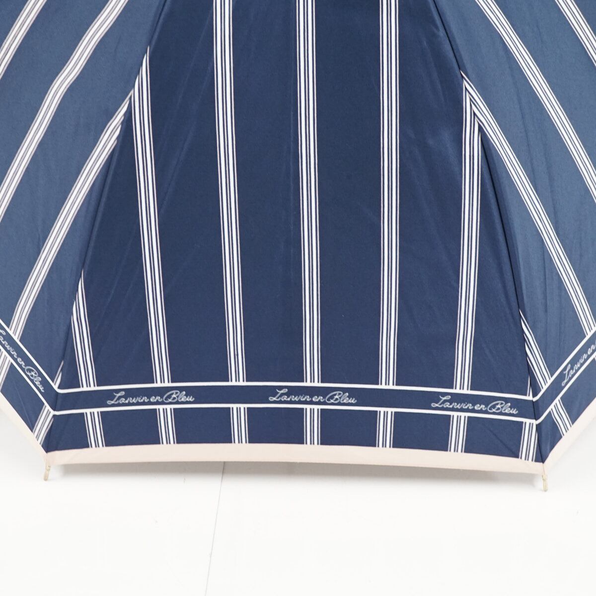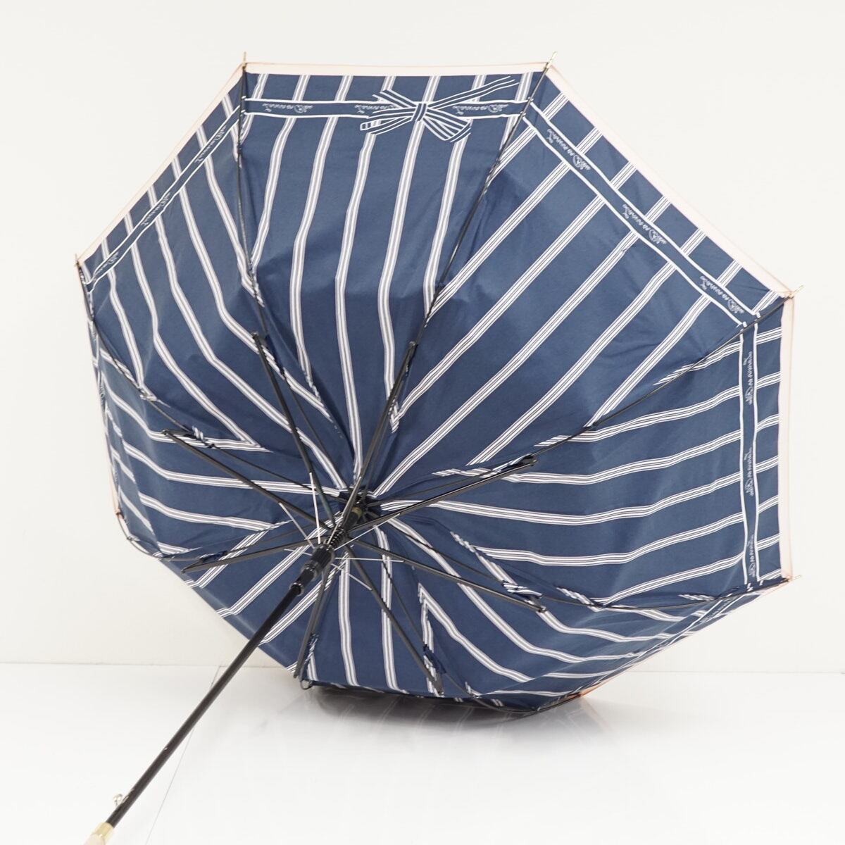 耐風傘 LANVIN en Bleu ランバンオンブルー USED美品 ストライプ リボン ブランドロゴ ネイビー 60cm A3318