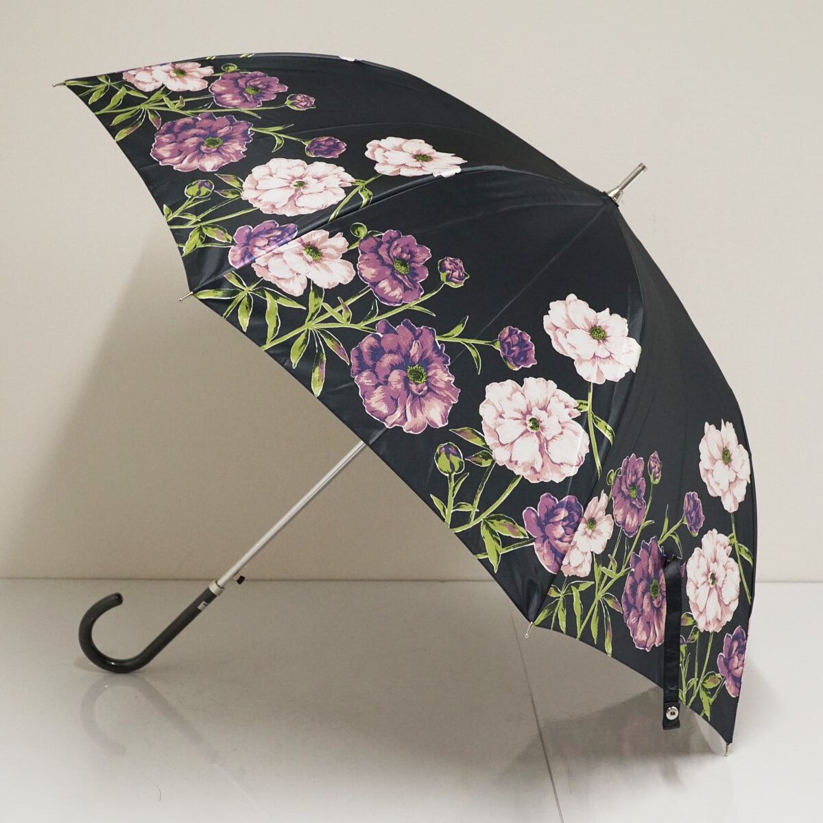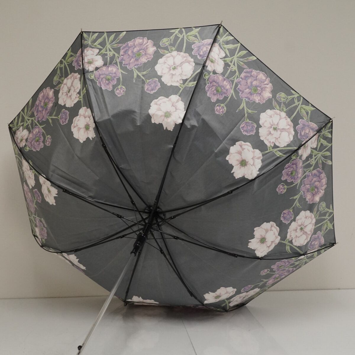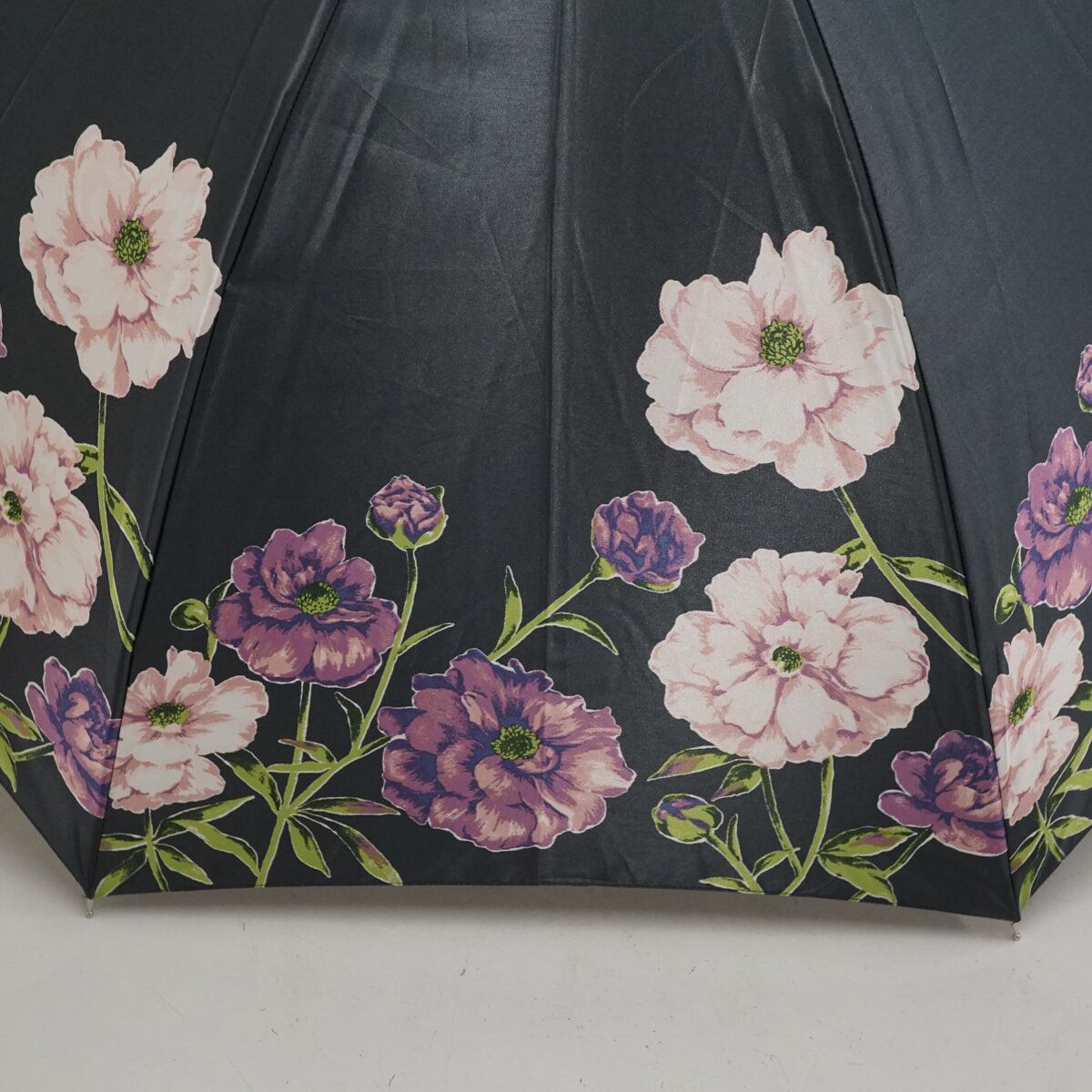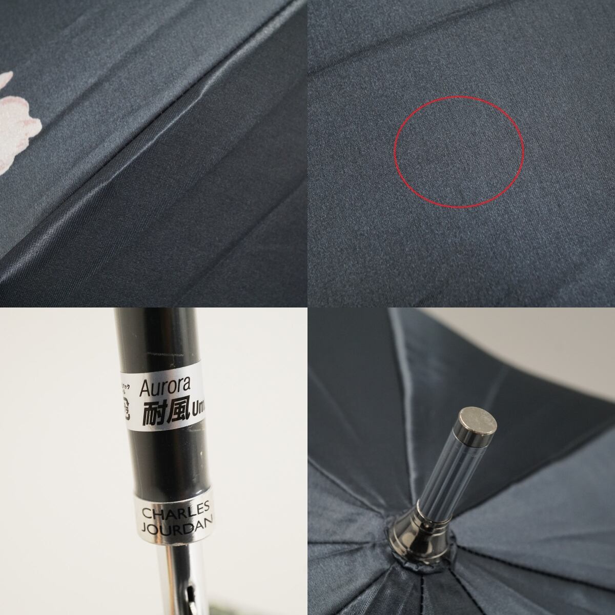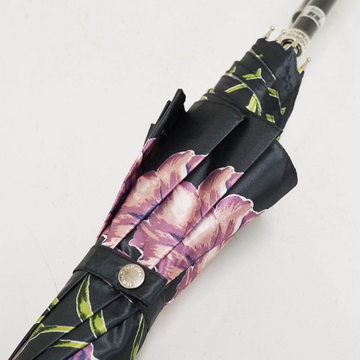耐風傘 CHARLES JOURDAN シャルルジョルダン USED美品 フラワー ジャンプ ブラック 60cm A3321