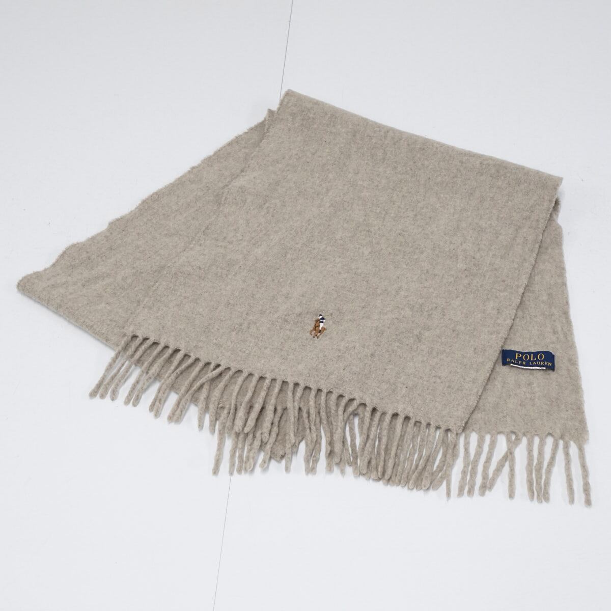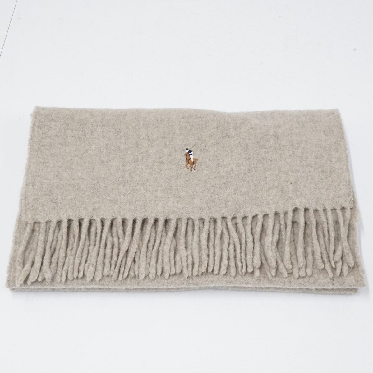Polo Ralph Lauren ポロラルフローレン マフラー USED美品 ユニセックス ポロポニー 刺繍 グレージュ ブランド ストール X8135
