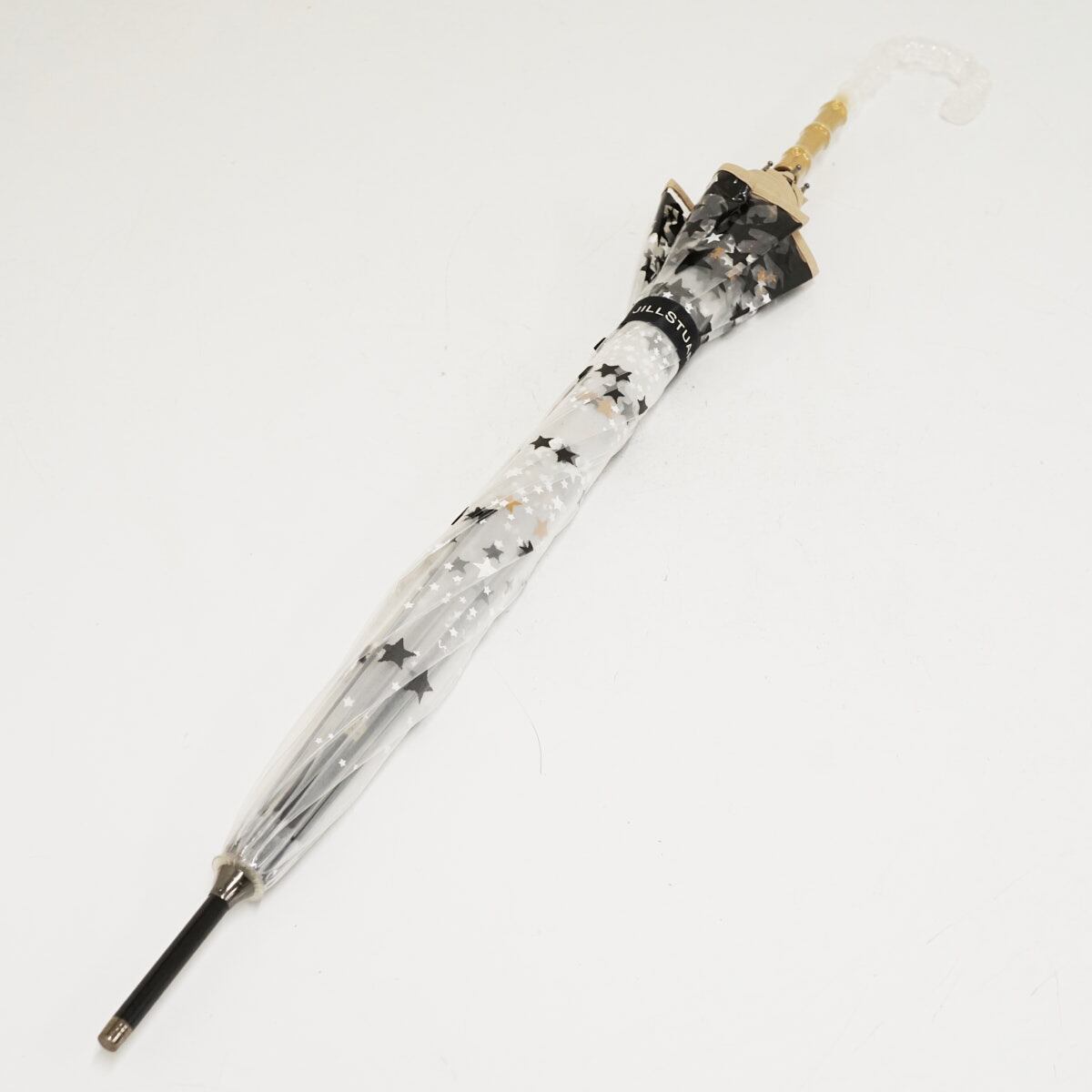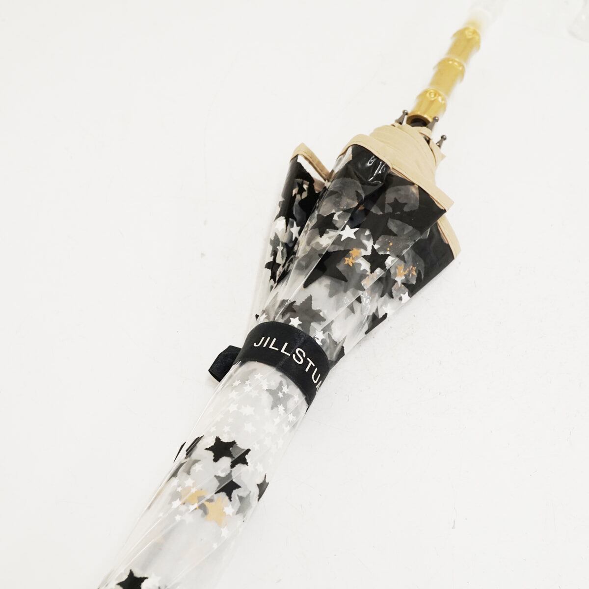 傘 JILL STUART ジルスチュアート USED品 ビニール傘 星柄 スター 深張り ドーム型 ブラック 60cm A3322