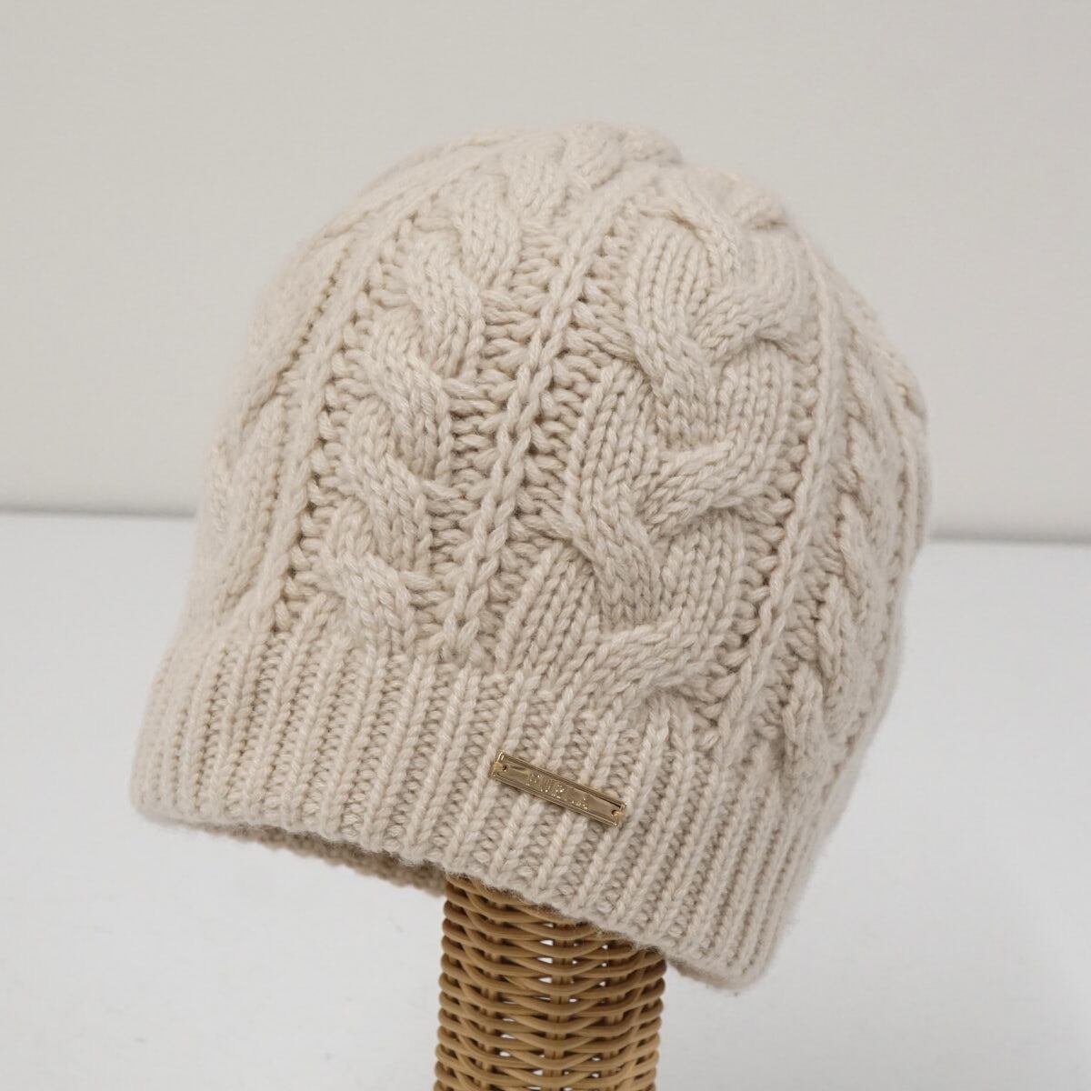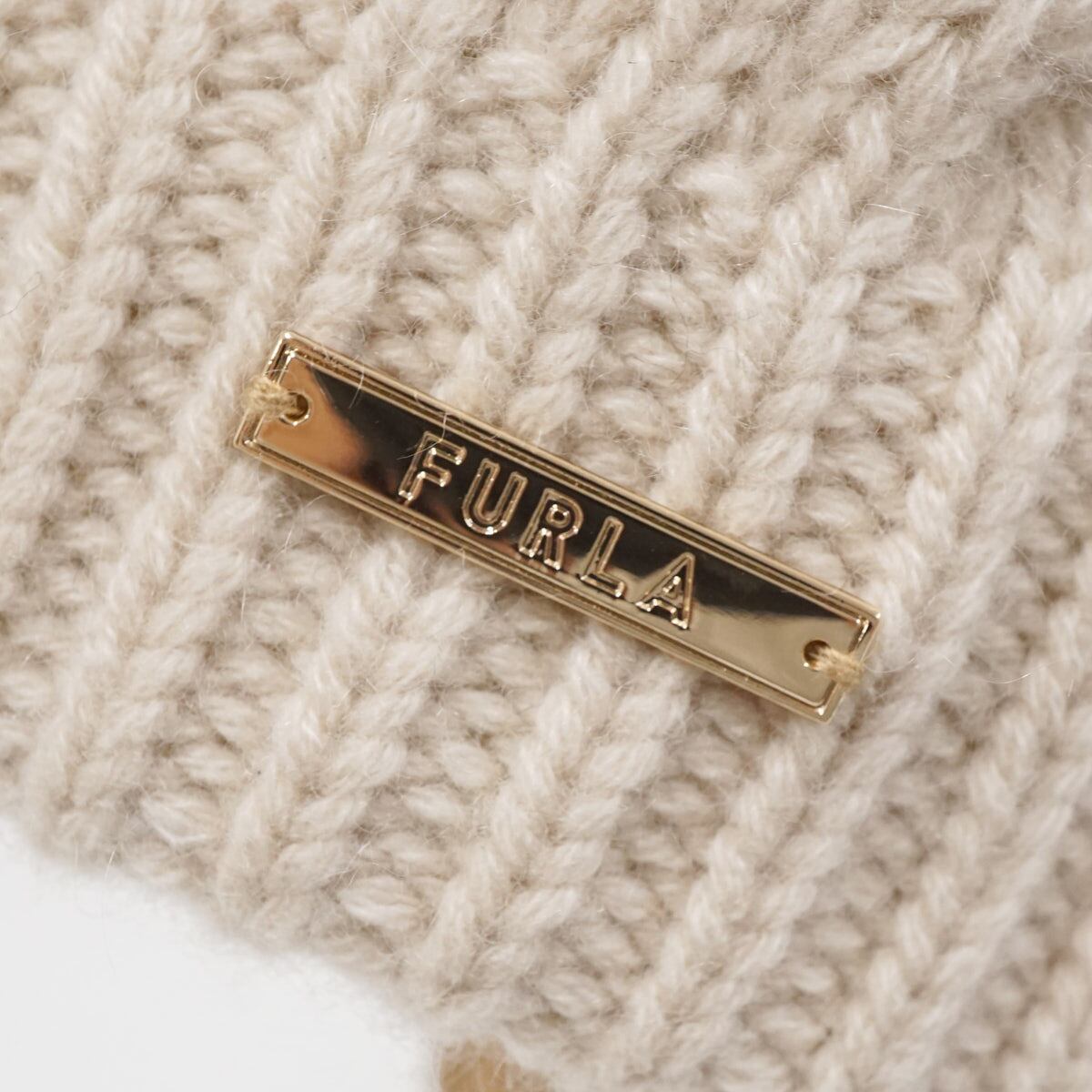 FURLA フルラ カシミヤ100% ニット帽 USED美品 ライトベージュ レディース フリーサイズ X8118