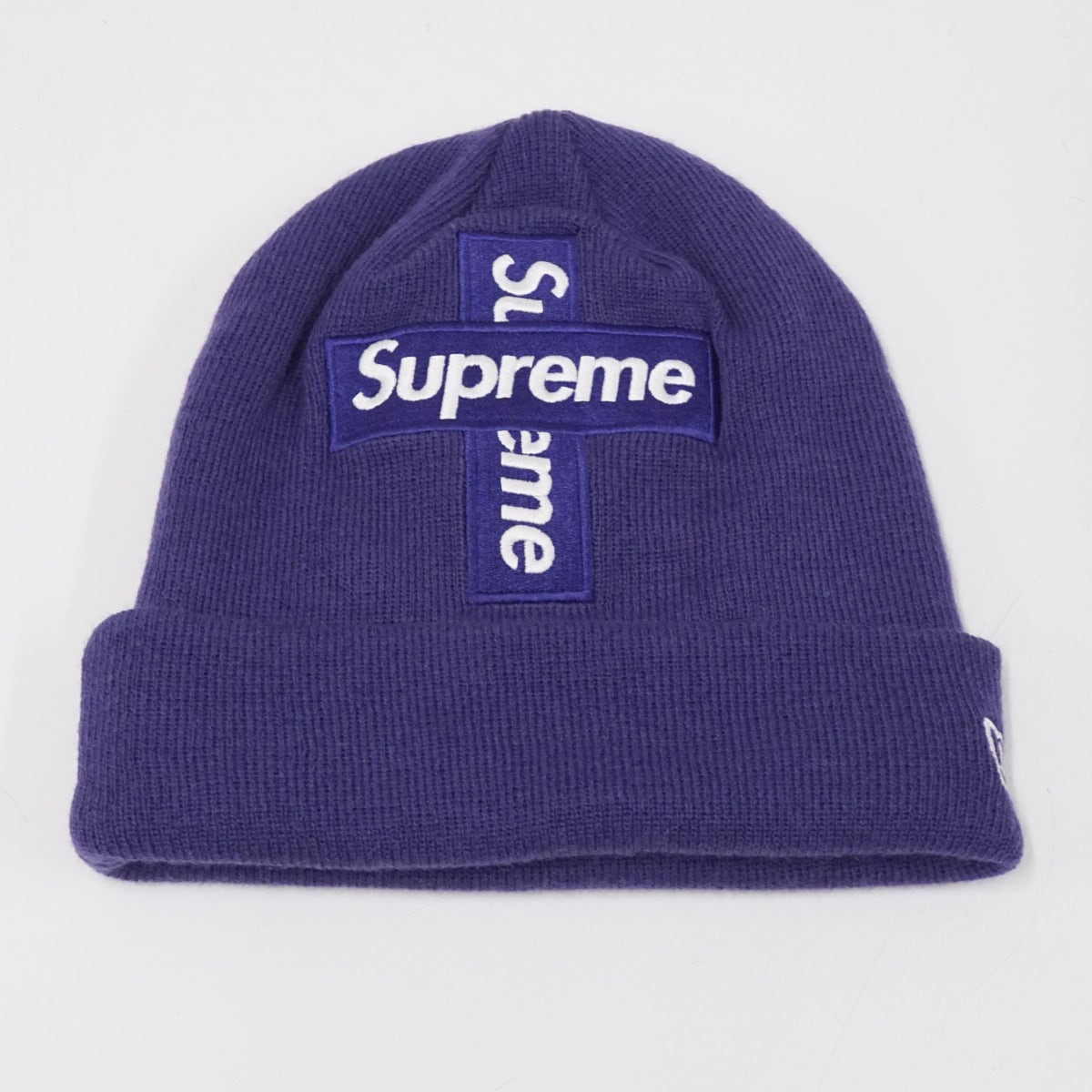 Supreme NEWERA クロスボックスロゴ ニット帽 USED美品 シュプリーム ニューエラ パープル ビーニー フリーサイズ X8119
