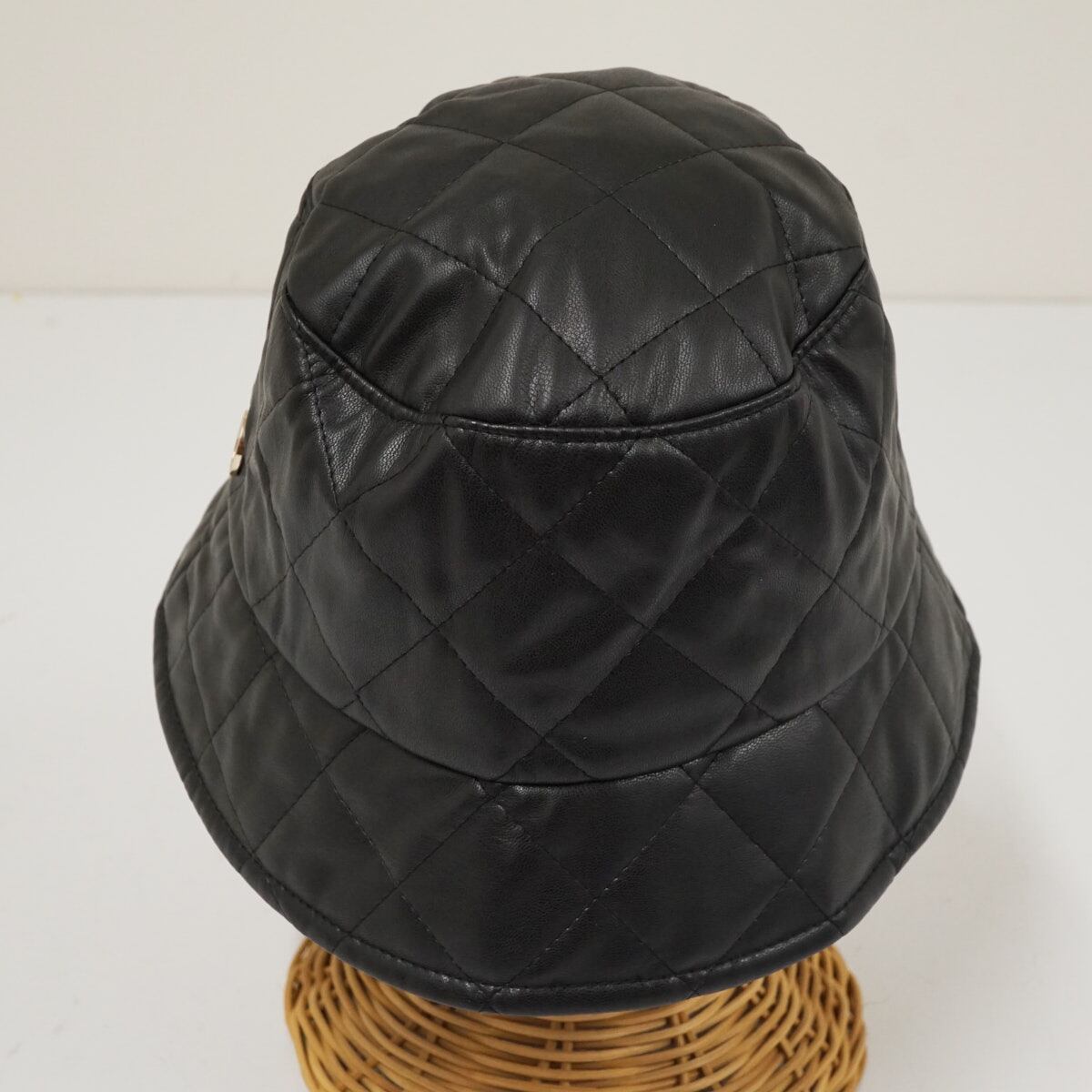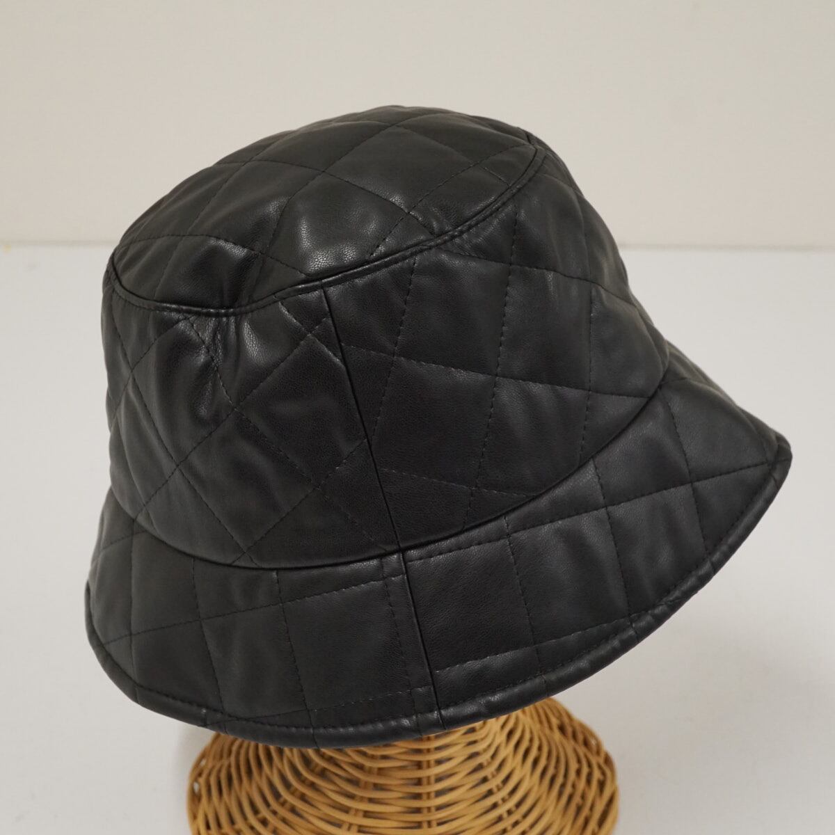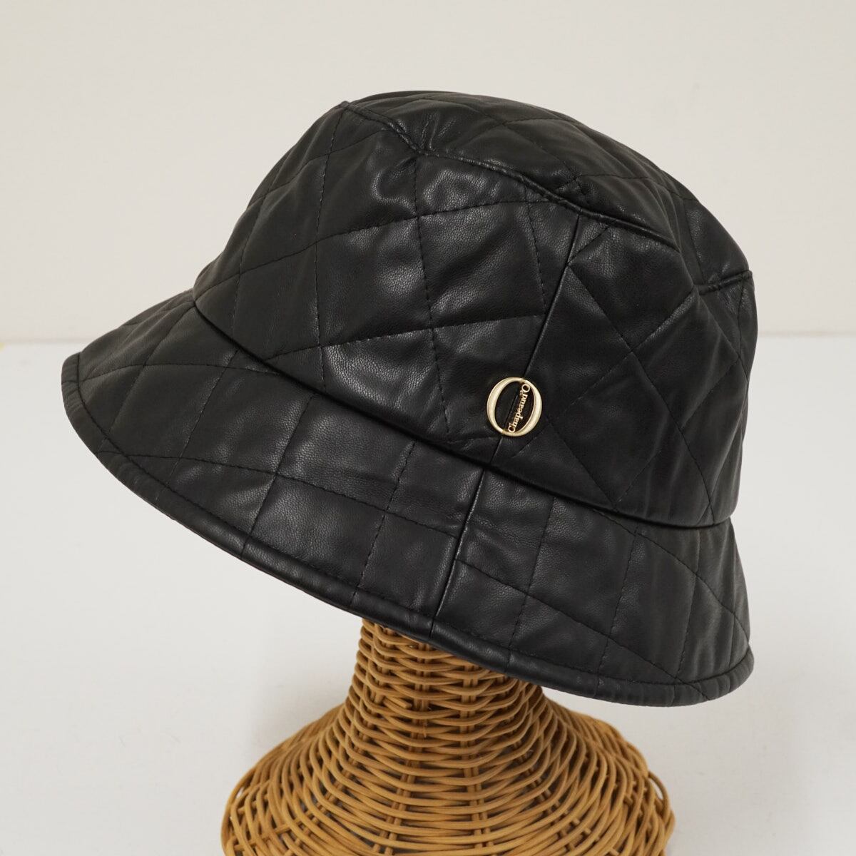 Chapeau d' O シャポードオー フェイクレザー キルティング バケットハット USED美品 ブラック ワンポイント レディース X8143