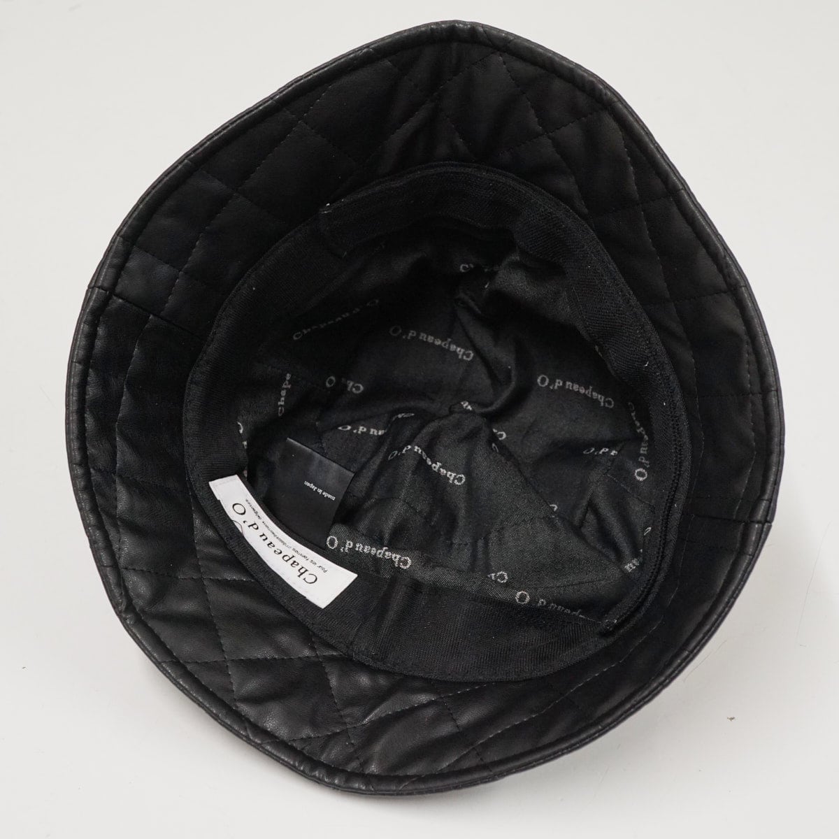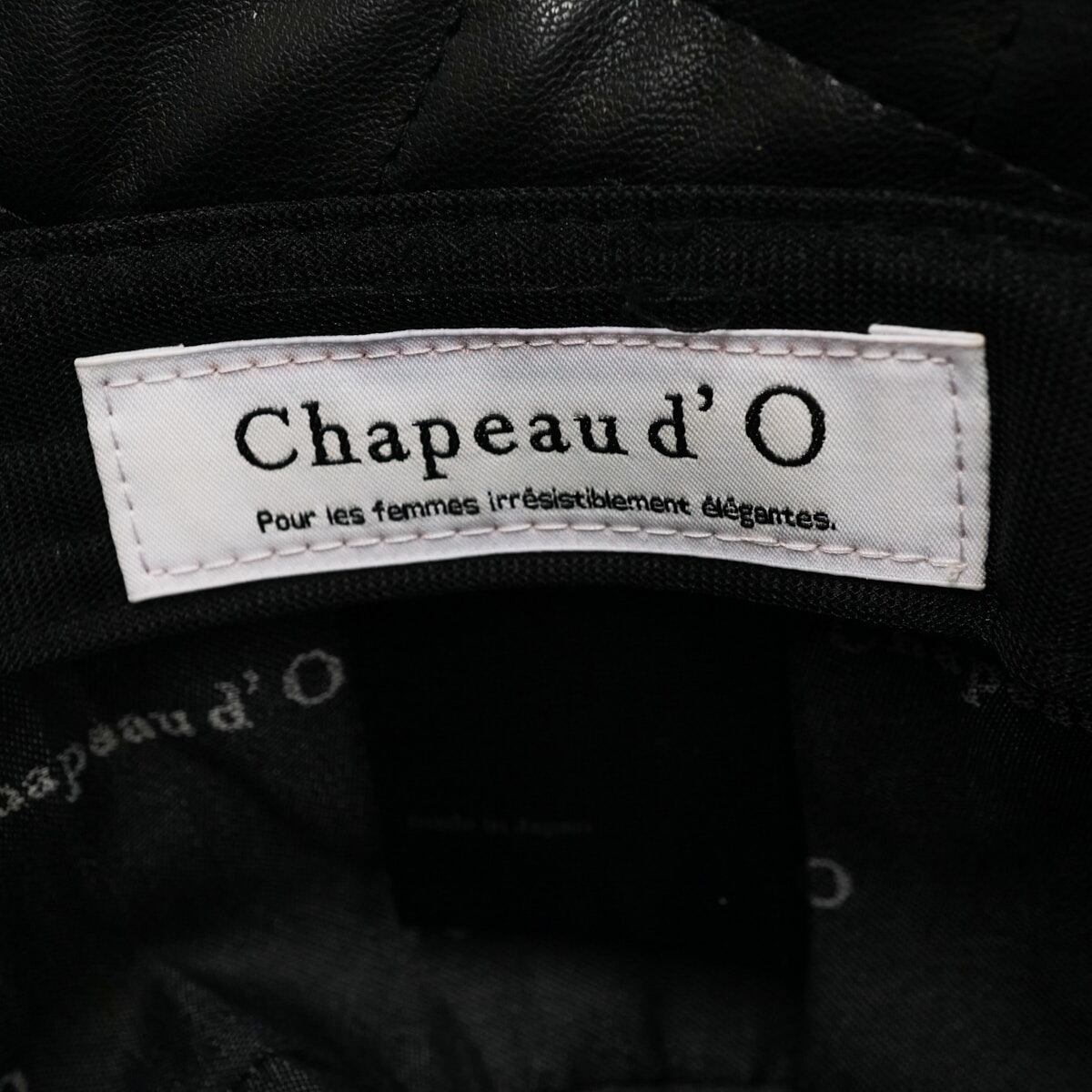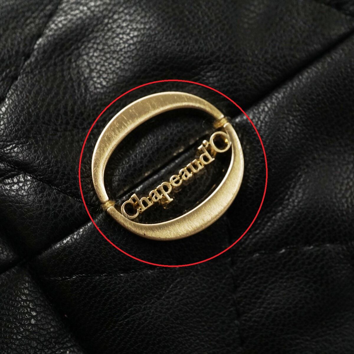 Chapeau d' O シャポードオー フェイクレザー キルティング バケットハット USED美品 ブラック ワンポイント レディース X8143