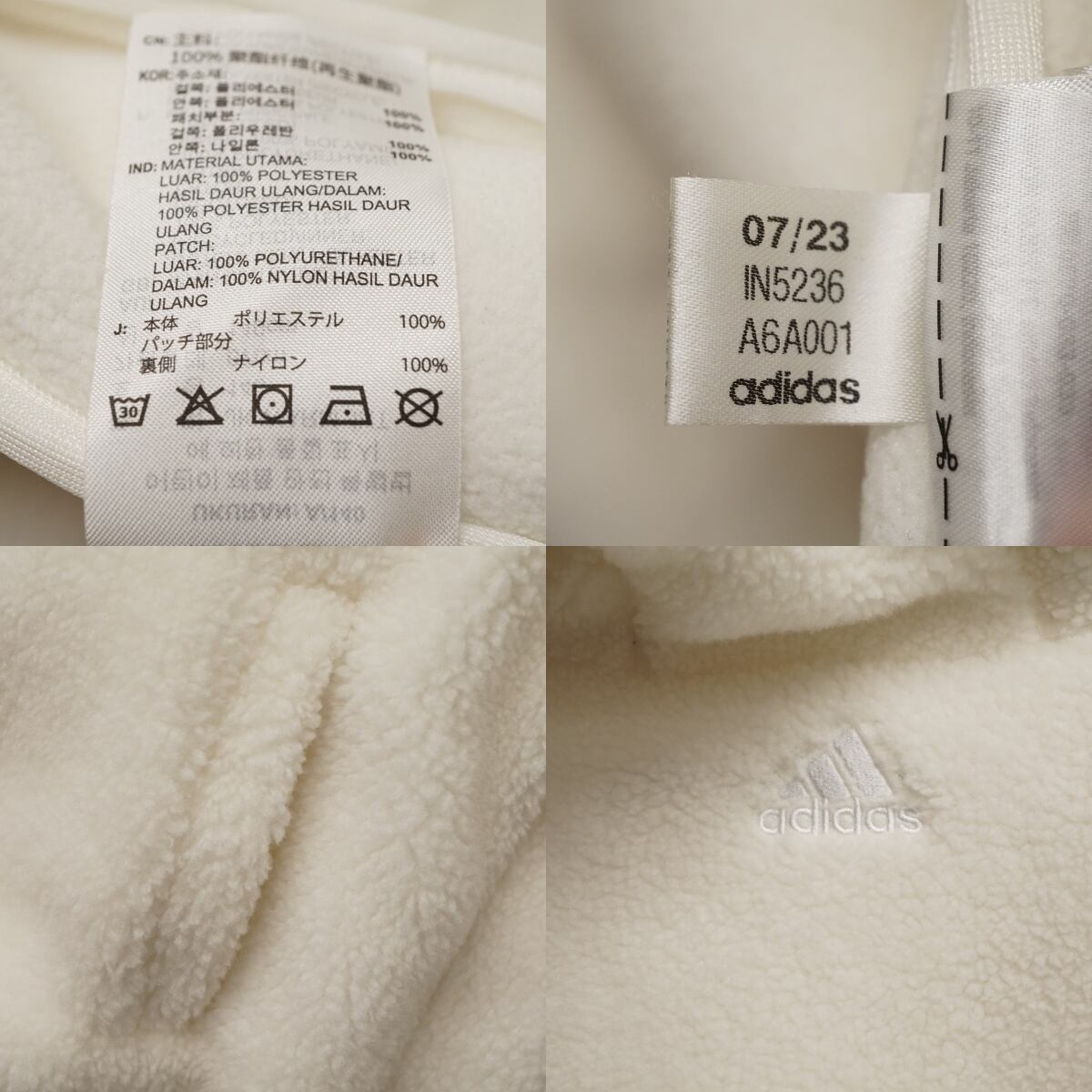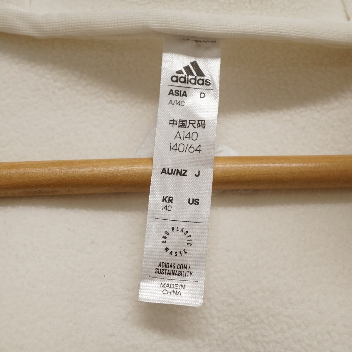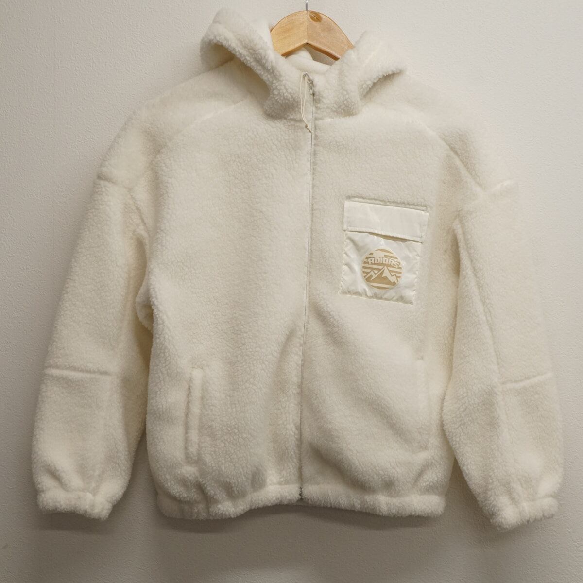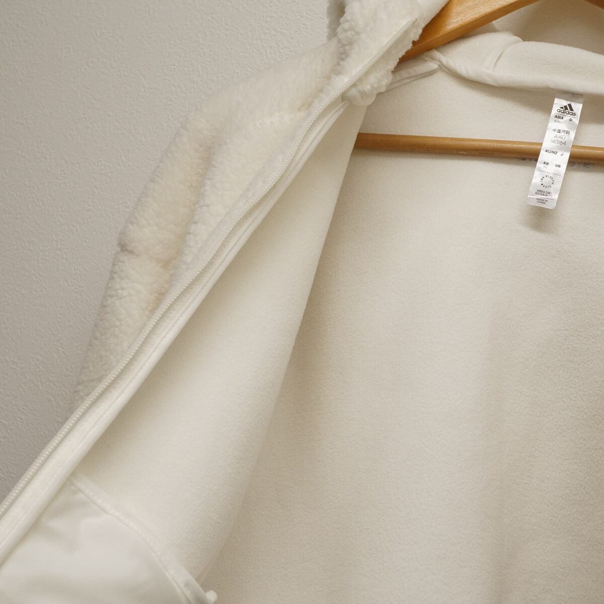 Adidas アディダス ボアフリース キッズ USED美品 ジャケット アウター 秋冬 ホワイト フード付き 140cm X8148