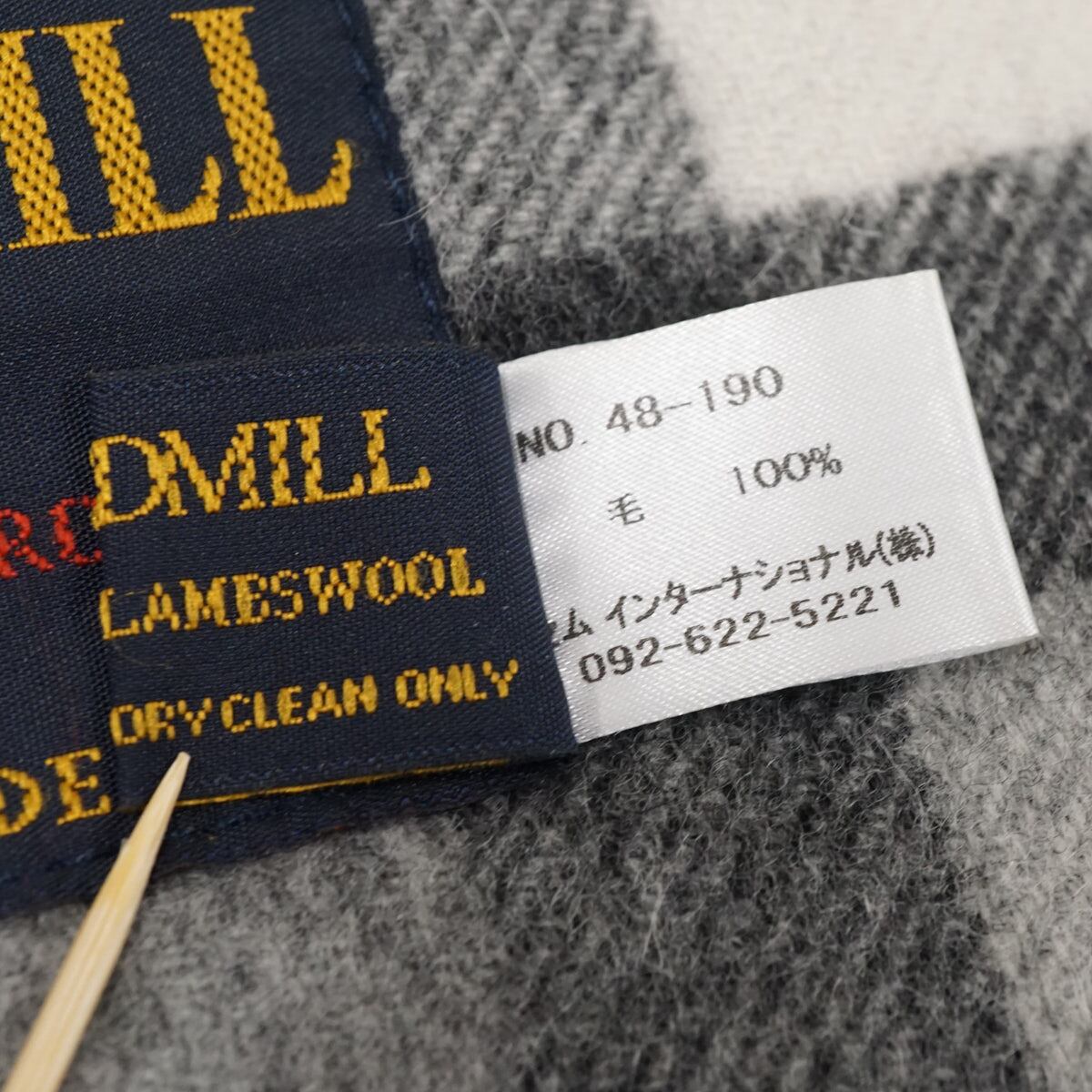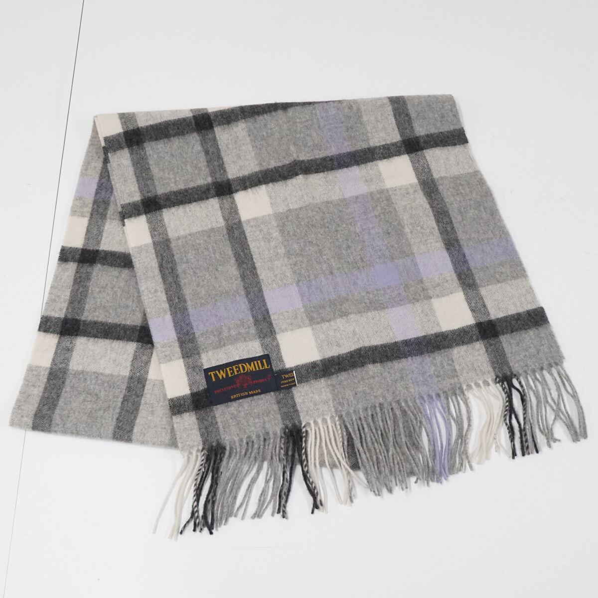 TWEEDMILL ツイードミル USED美品 マフラー チェック グレー ブランド ストール ウール X8163