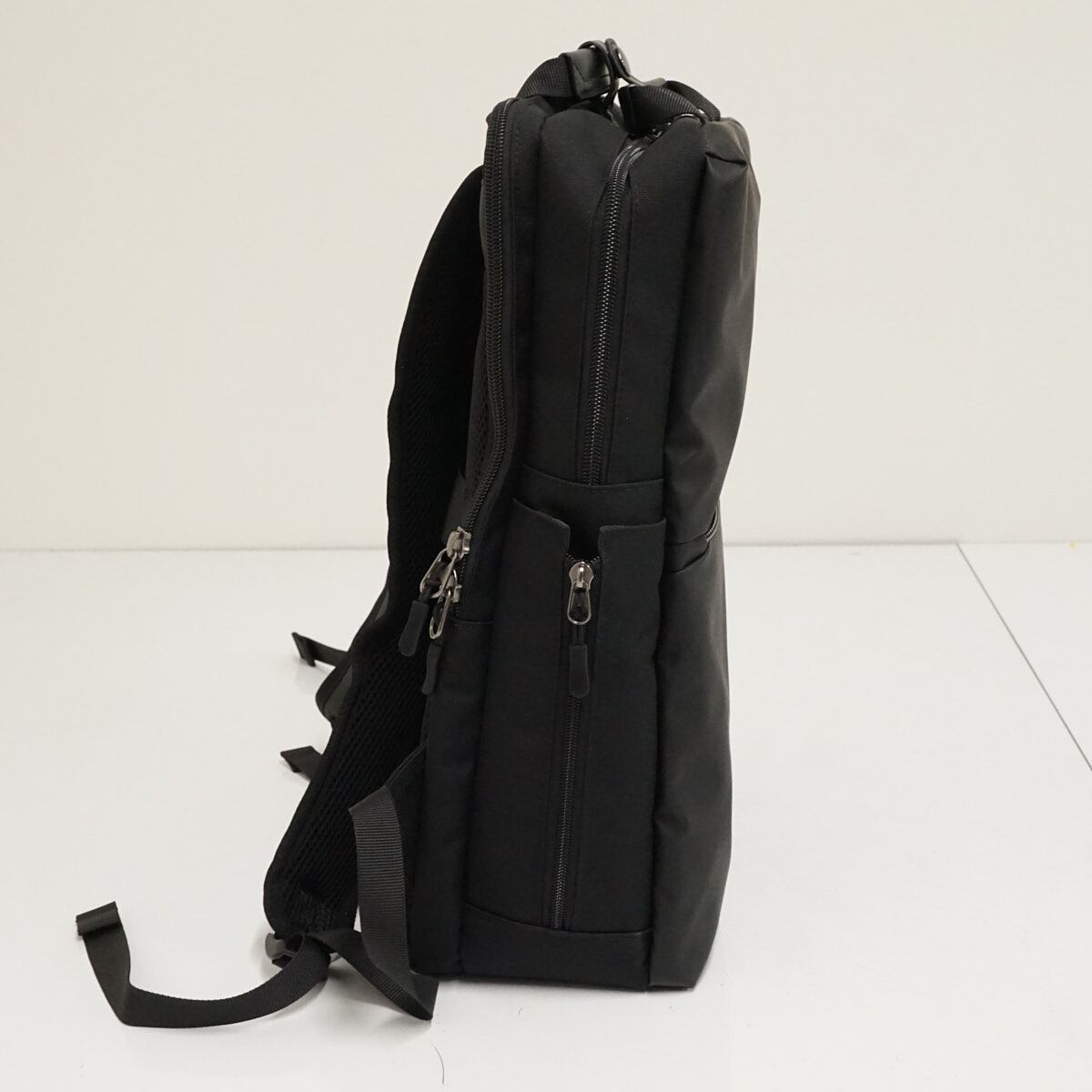 B4サイズ収納可能、サイド(片側)にはペットボトル等を収納できるポケット付き。