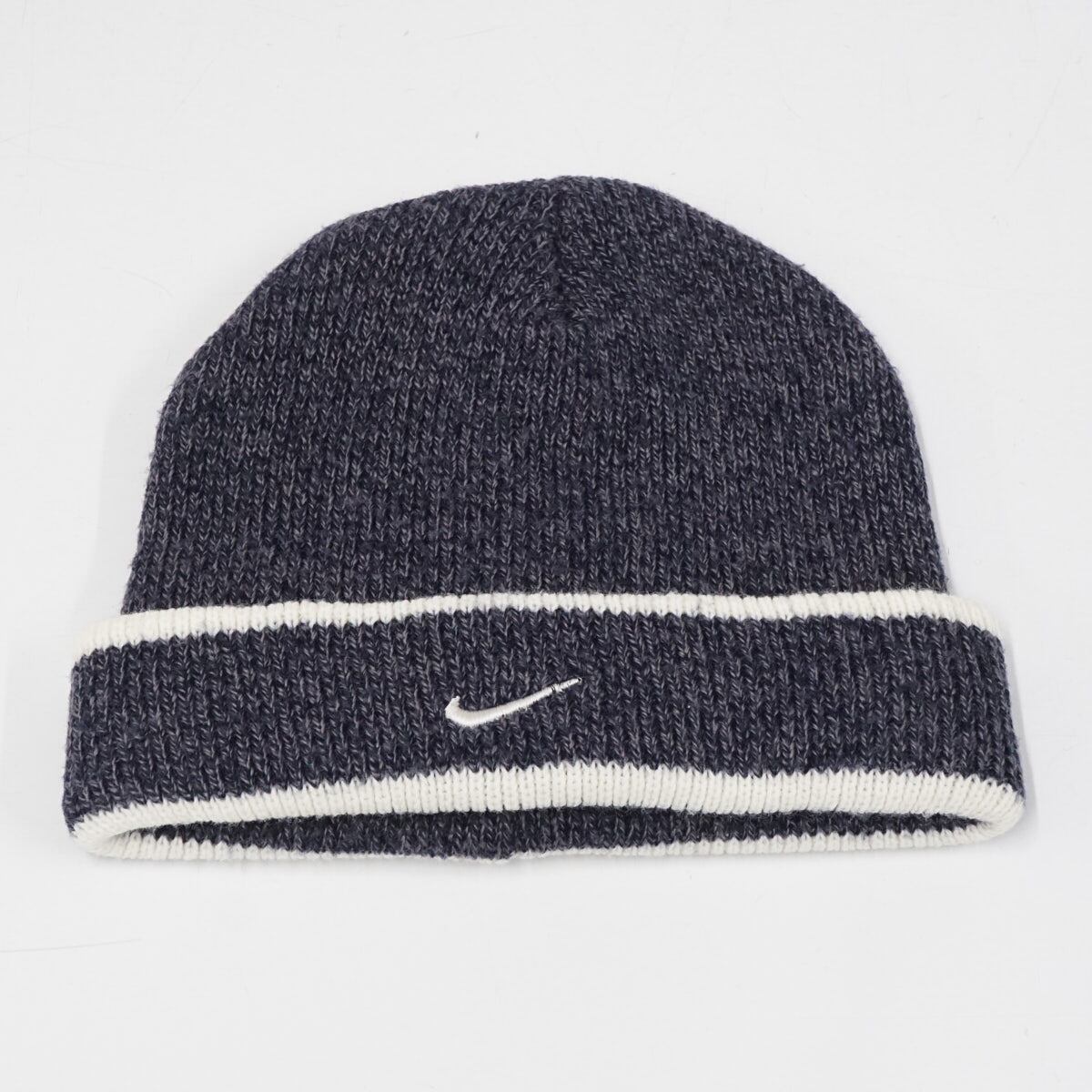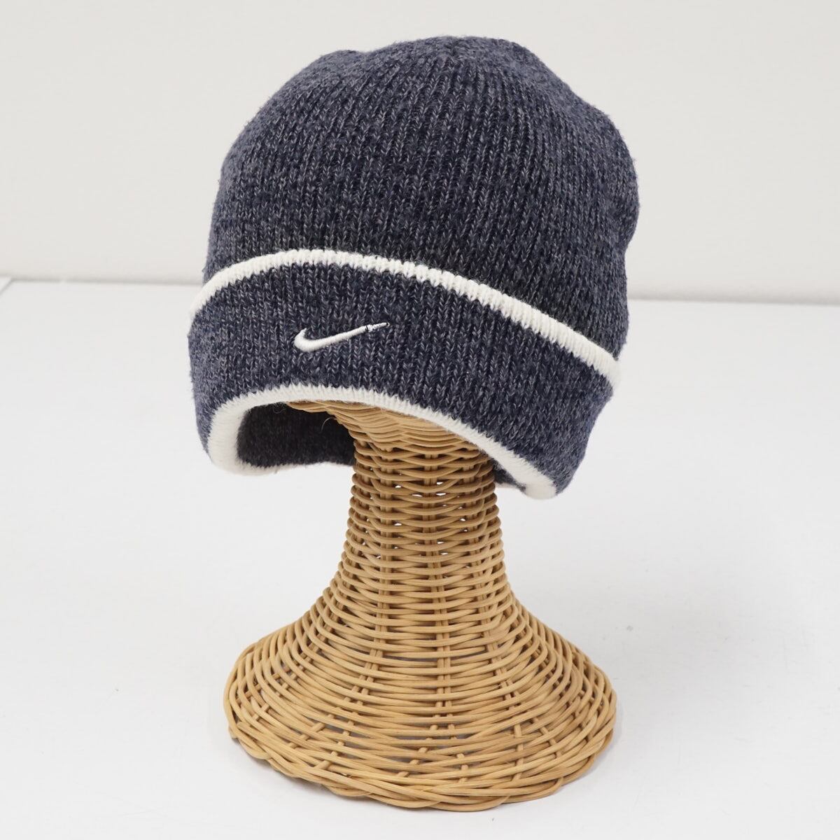 NIKE ナイキ ニット帽 USED美品 ホワイトライン ネイビー ユニセックス 刺繍 ビーニー 帽子 X8127