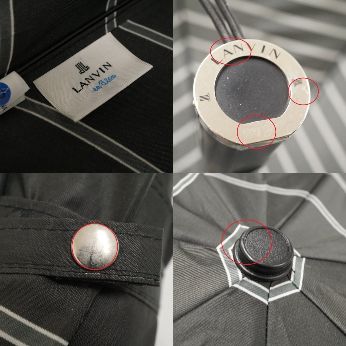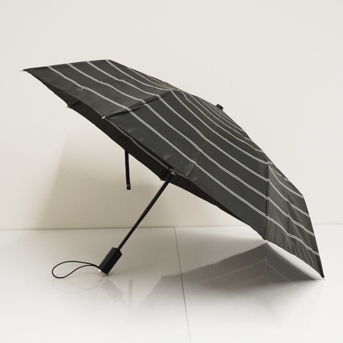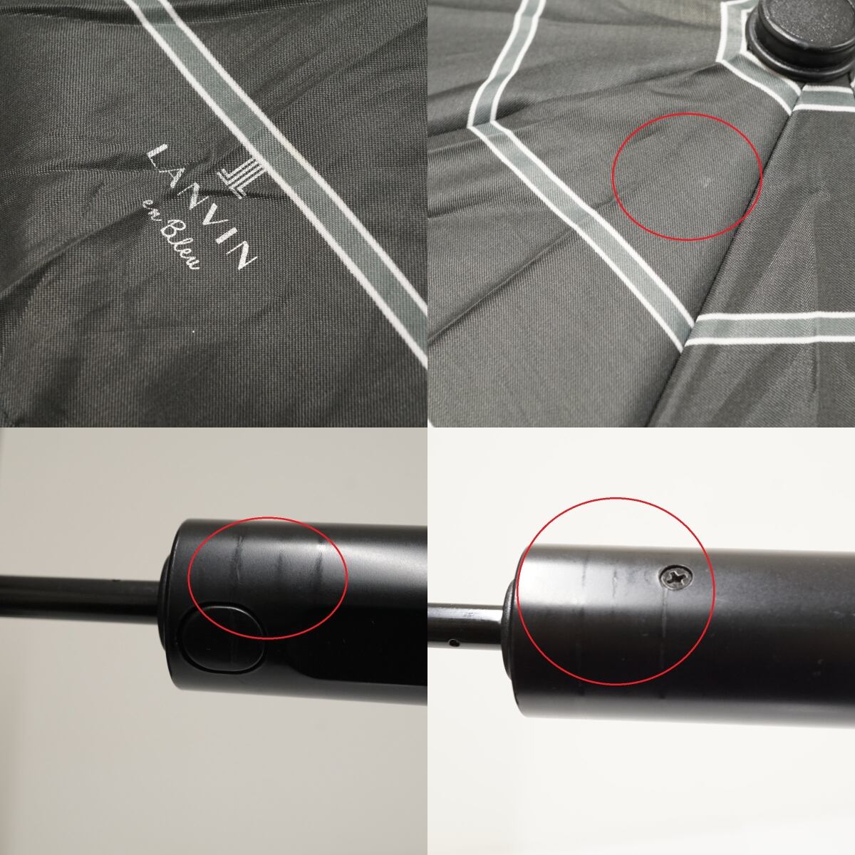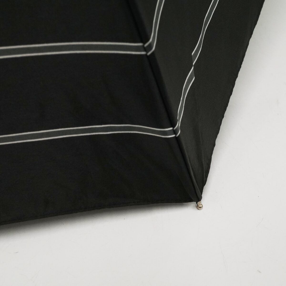 自動開閉式折りたたみ傘 LANVIN en Bleu ランバンオンブルー USED美品 ボーダー ブランドロゴ ブラック ユニセックス 55cm FA9463