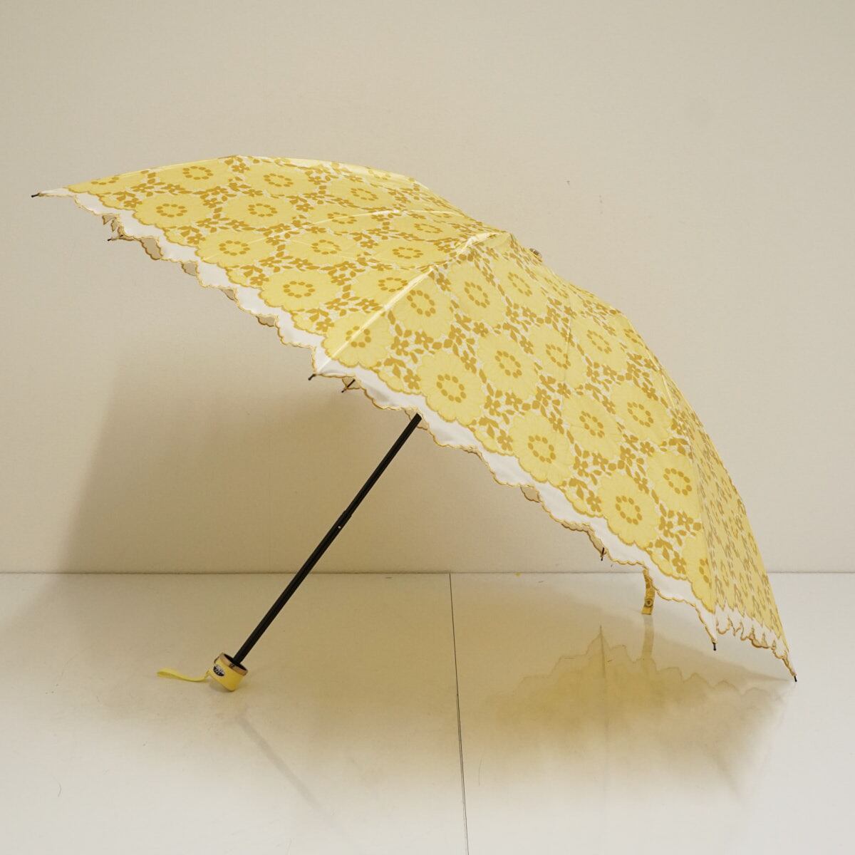 折りたたみ傘 LANVIN en Bleu ランバンオンブルー USED品 フラワー 花柄 イエロー 華やか 55cm FA9462