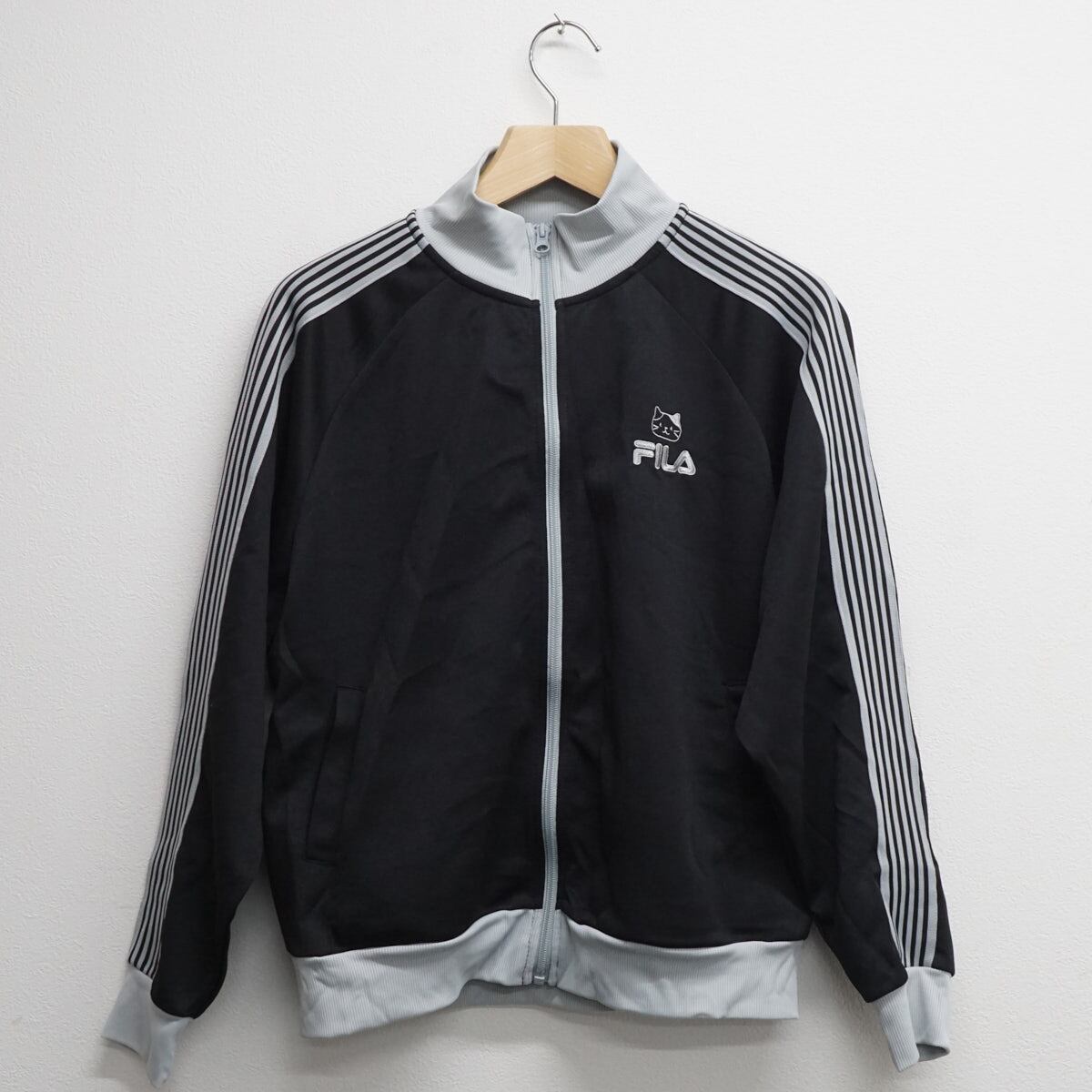 FILA フィラ ふくふくにゃんこ トラックジャケット USED品 ブラック ハピンズ レディース ボーダー 猫 かわいい X8206