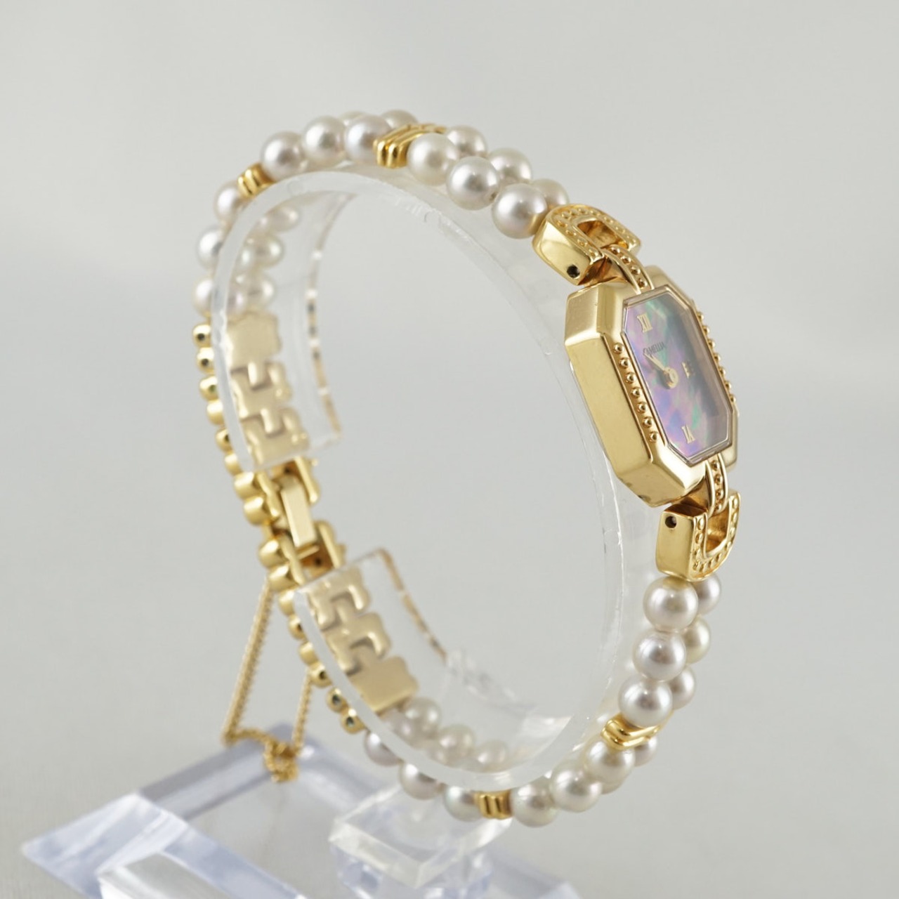 ミキ コーポレーション 腕時計 USED美品 CAMELLIA シェル文字盤 クォーツ MIKI CORPORATION 完動品 X7928