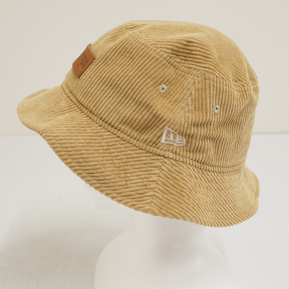 NEW ERA ニューエラ メンズ バケットハット USED超美品 コーデュロイ レザーパッチ ハット ベージュ M(M/L) ベージュ X8218