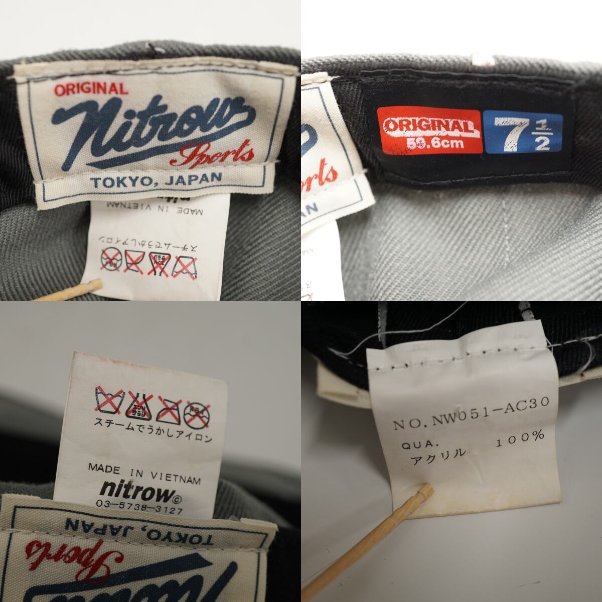 nitrow ナイトロウ ロゴキャップ USED品 メンズ キャップ グレー 野球帽 7 1/2 59.6cm ベースボールキャップ X8222