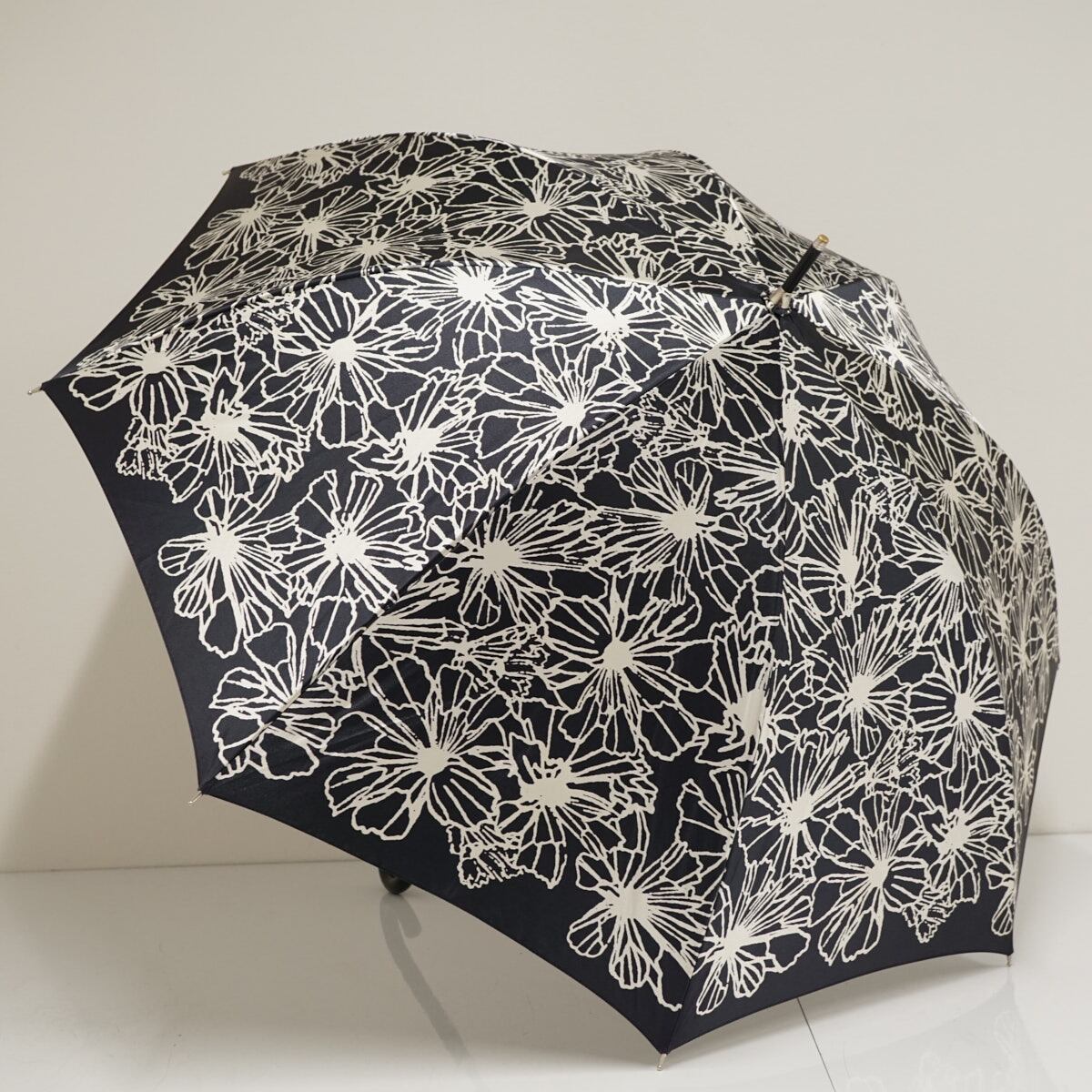 耐風傘 MOONBAT ムーンバット USED美品 ジャンプ アートフラワー ブラック おしゃれ グラス骨 60cm A3337