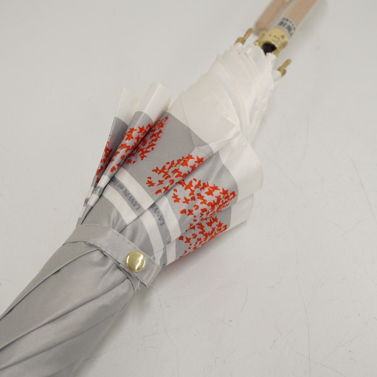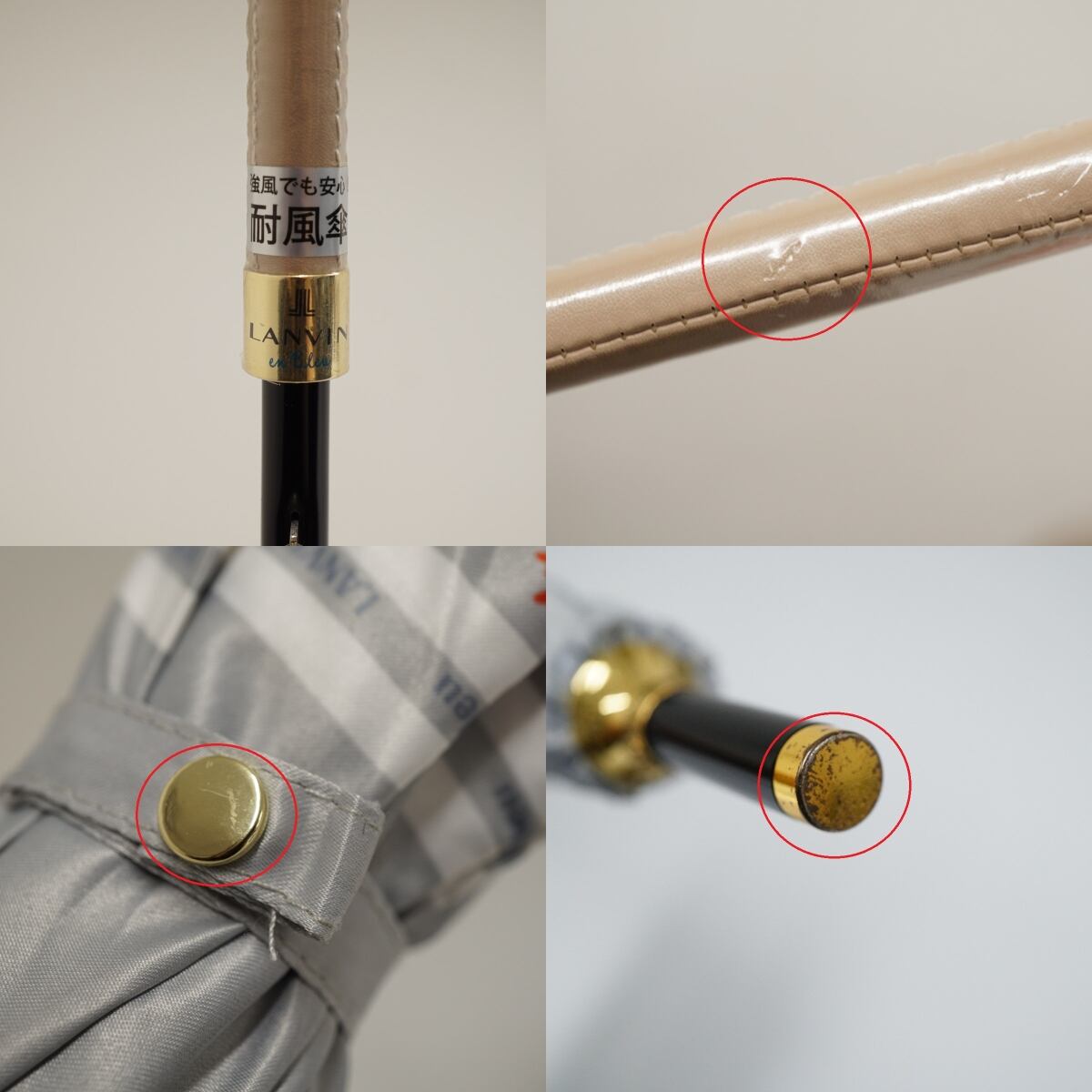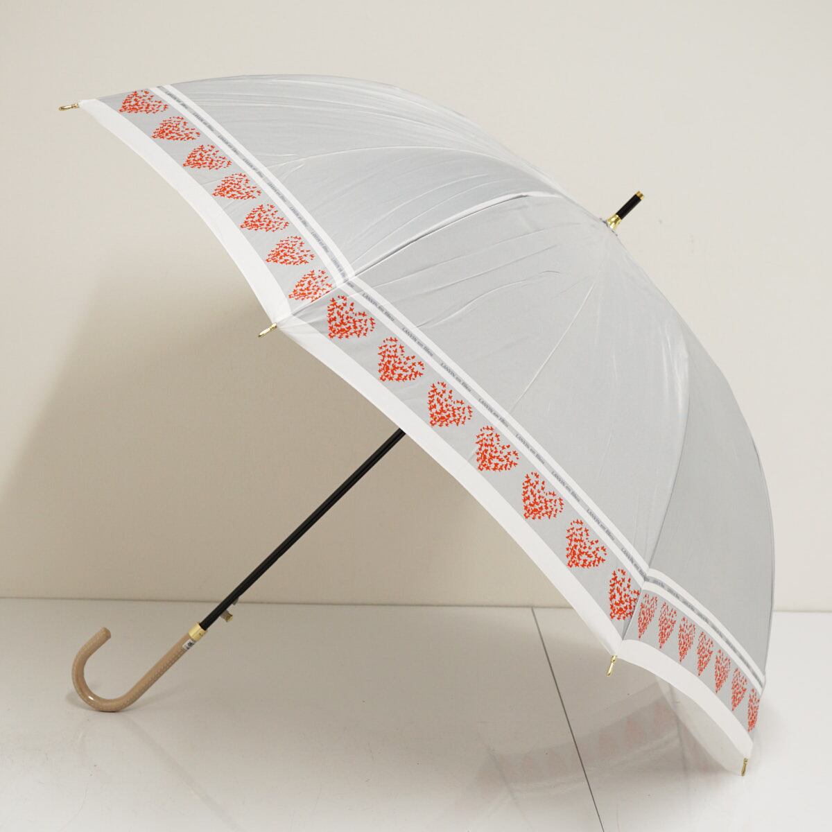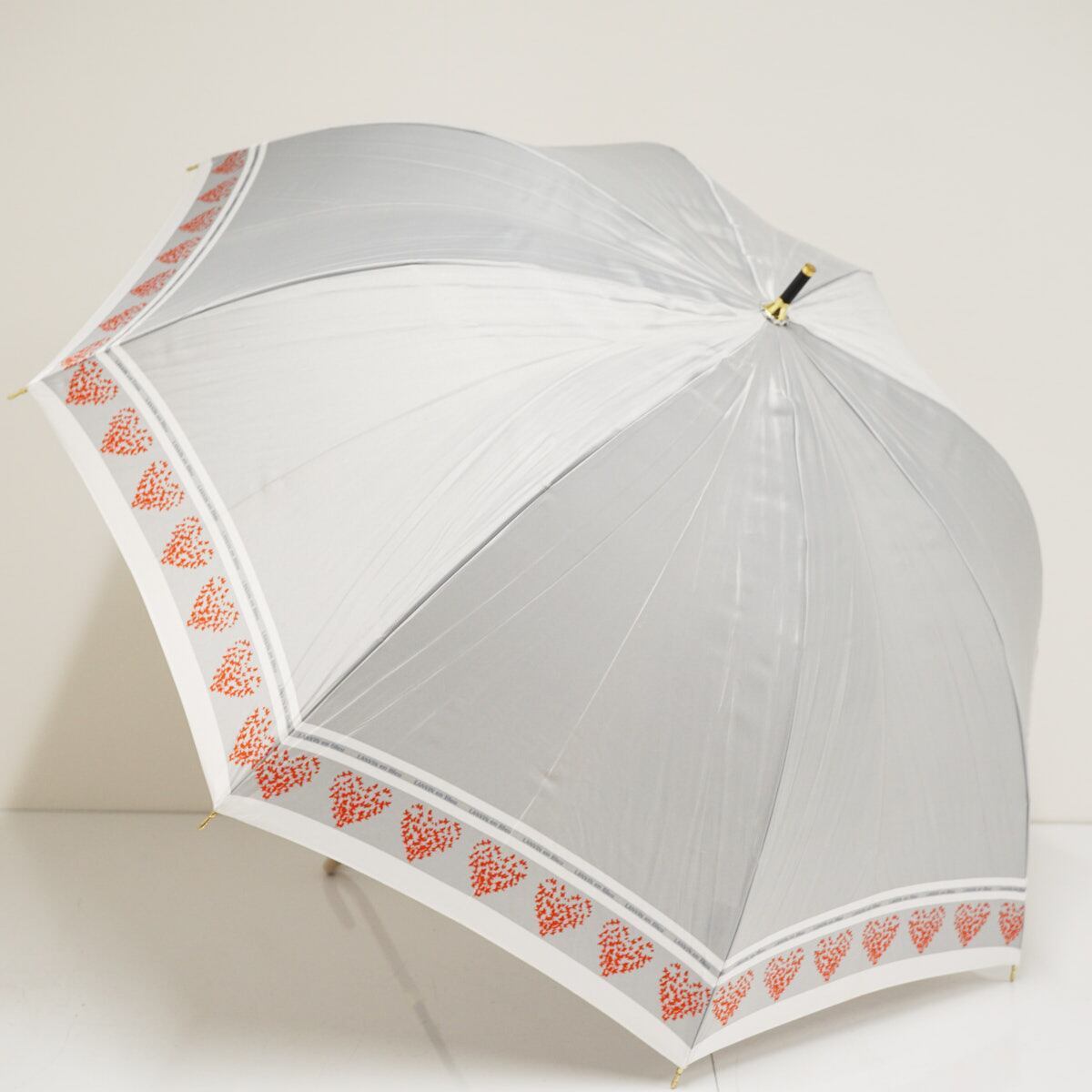 耐風傘 LANVIN en Bleu ランバンオンブルー USED品 ハート ライトグレー ロゴ ジャンプ 60cm A3338