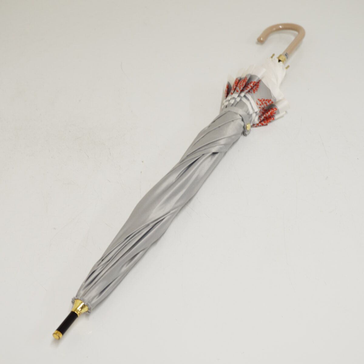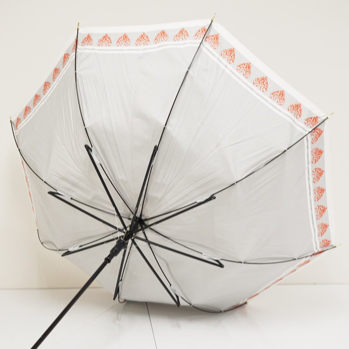レイトグレーカラーの生地にレッドののハート柄がかわいい傘です。