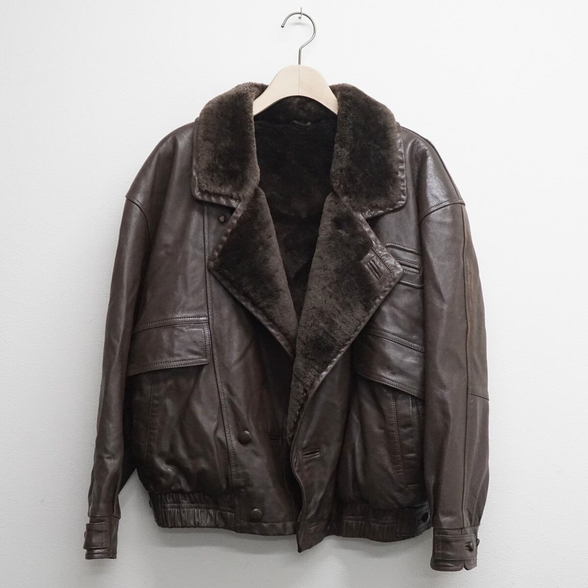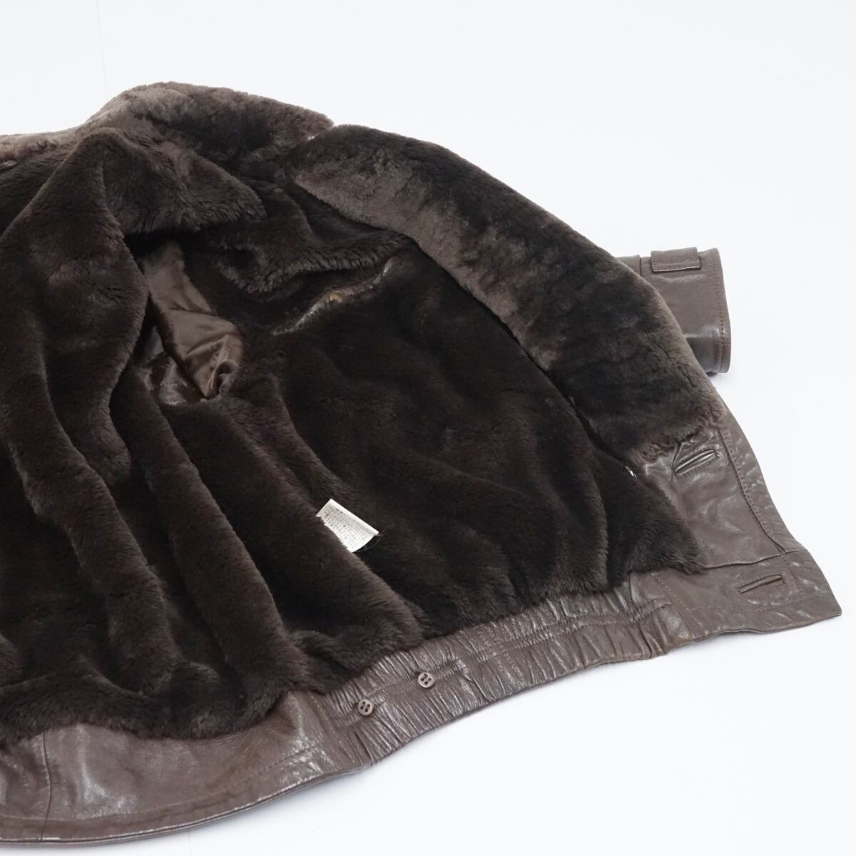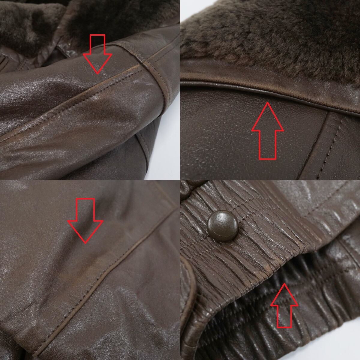 羊本革 レザー ボンバージャケット ブラウン USED品 Mサイズ メンズ ラムスキン 革ジャン ボマー 古着 ヴィンテージ アウター 秋冬 X8293