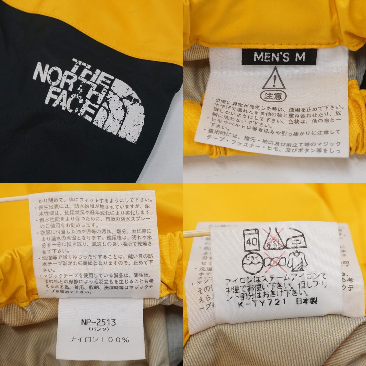 THE NORTH FACE ザノースフェイス レインパンツ NP-2513 USED美品 Mサイズ メンズ アウトドアパンツ イエロー ナイロン X8279