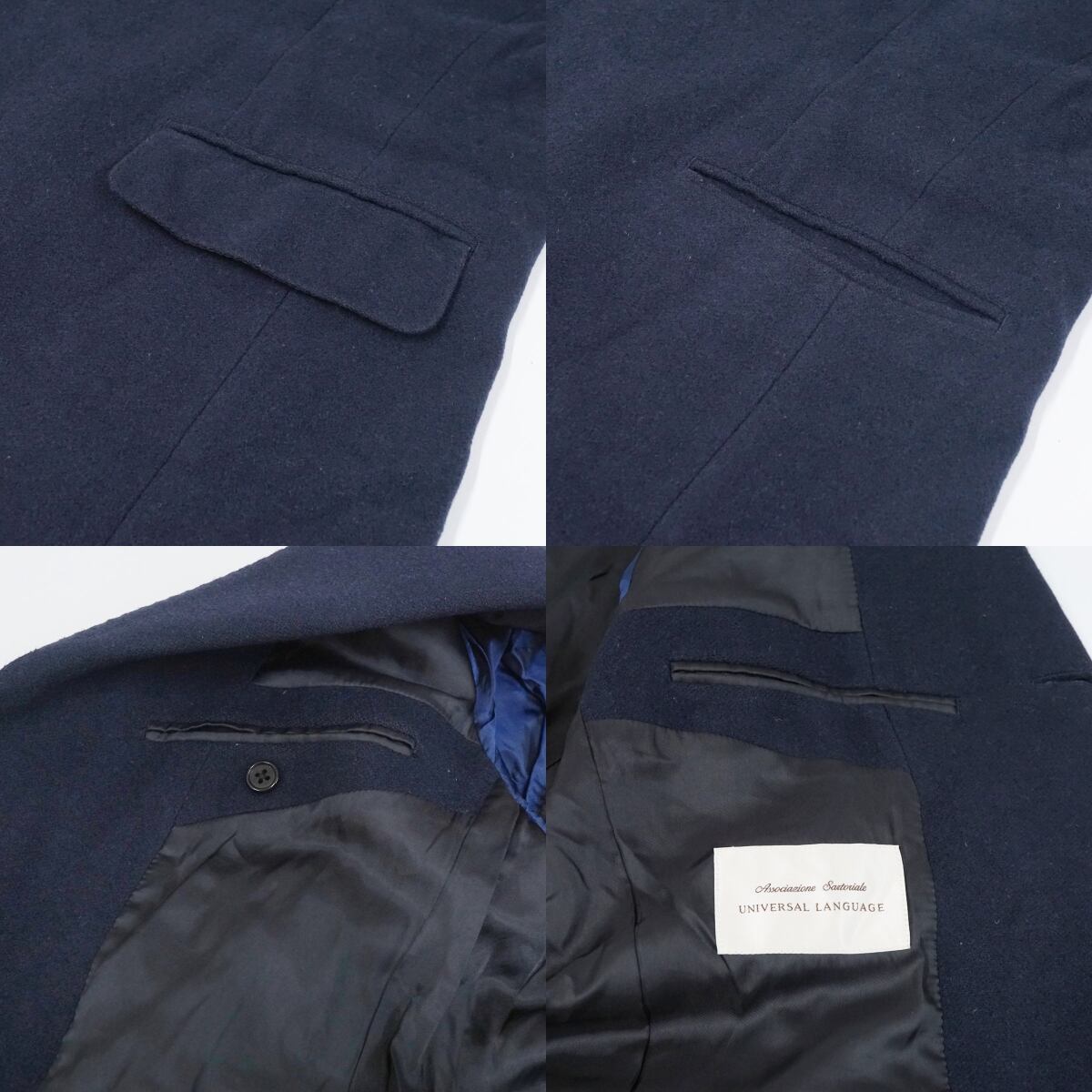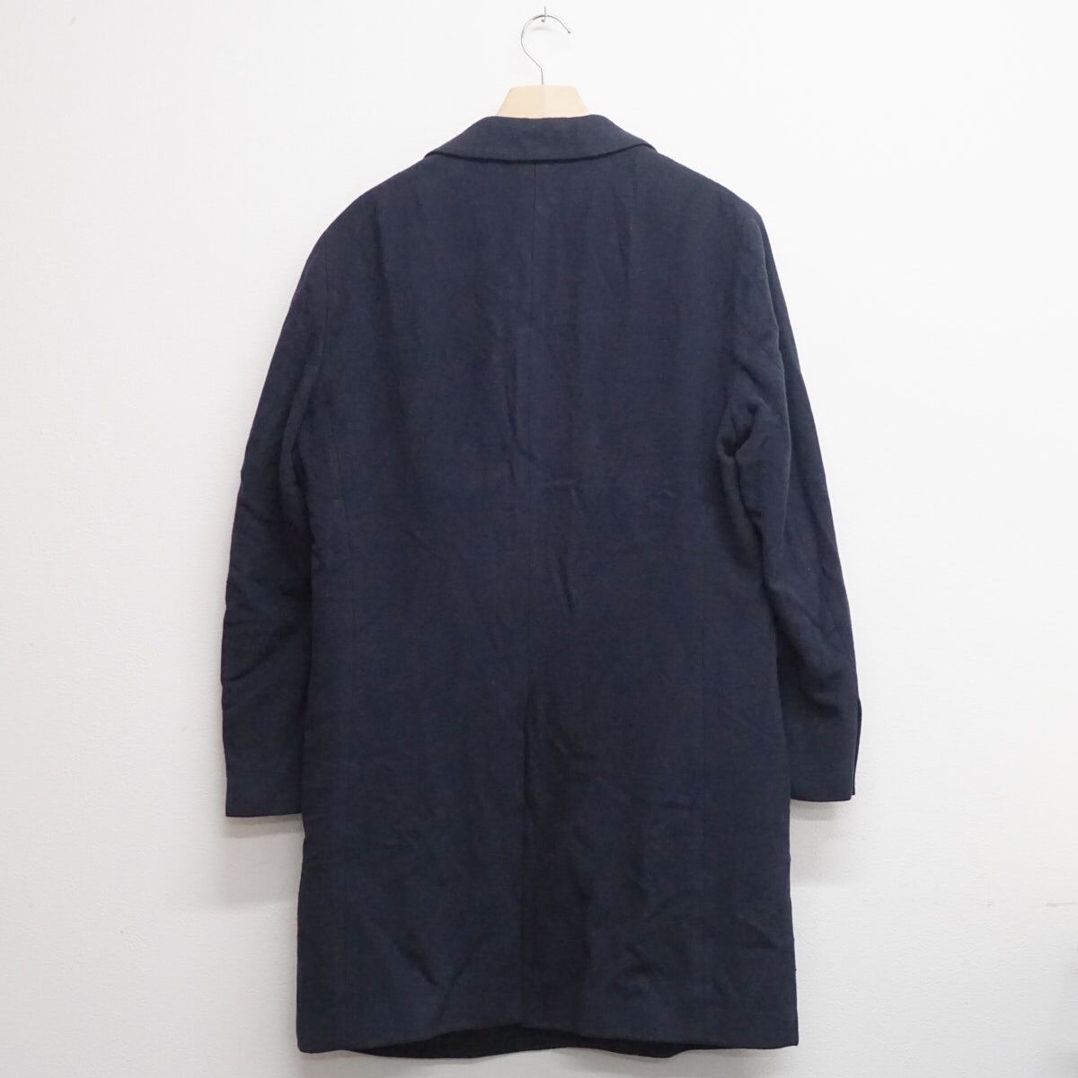 UNIVERSAL LANGUAGE ユニバーサルランゲージ チェスターコート USED品 LLサイズ ネイビー ウール カシミヤ X8278
