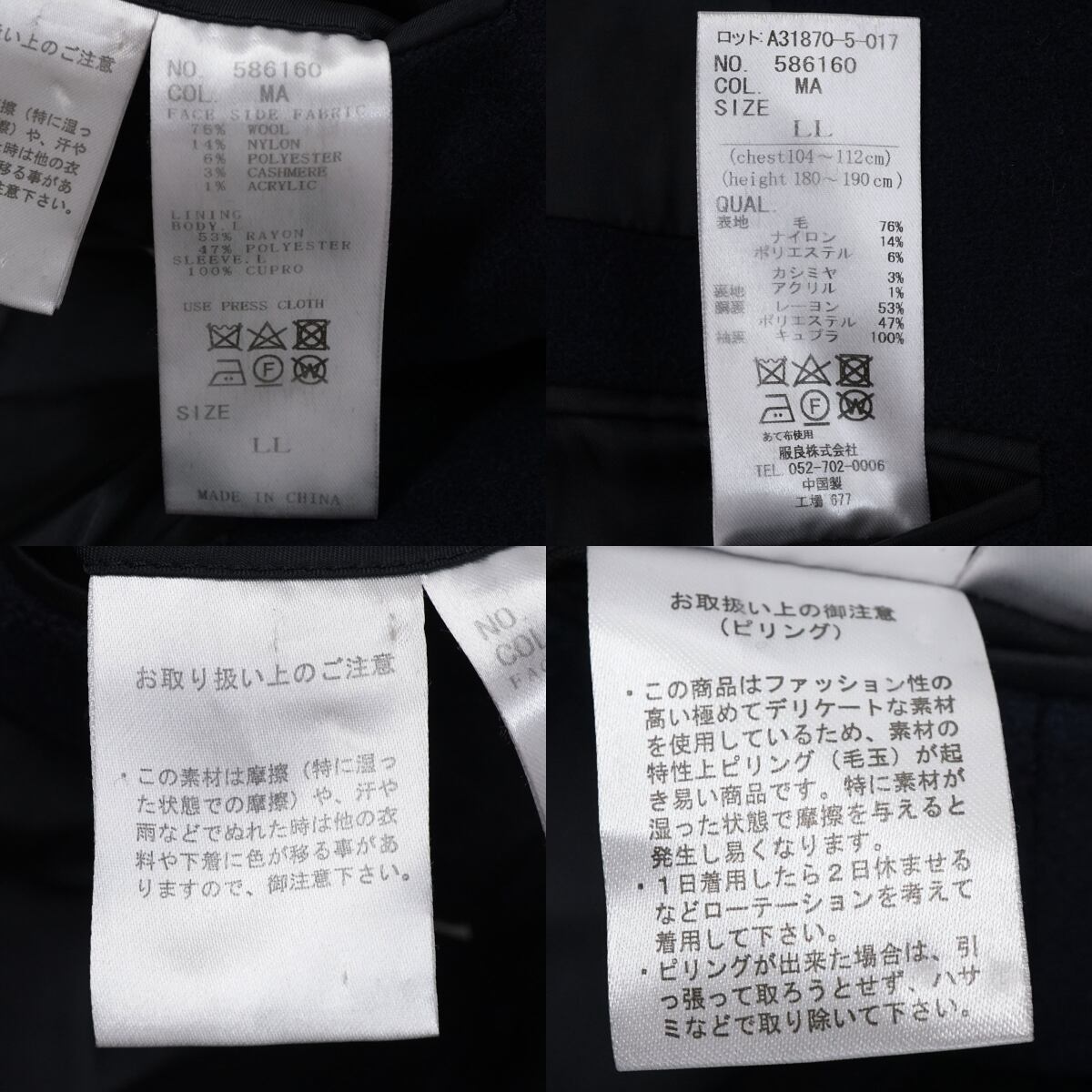 ※生地に若干の薄汚れや毛羽立ち、毛玉があります。(一部を画像にてご確認ください。)