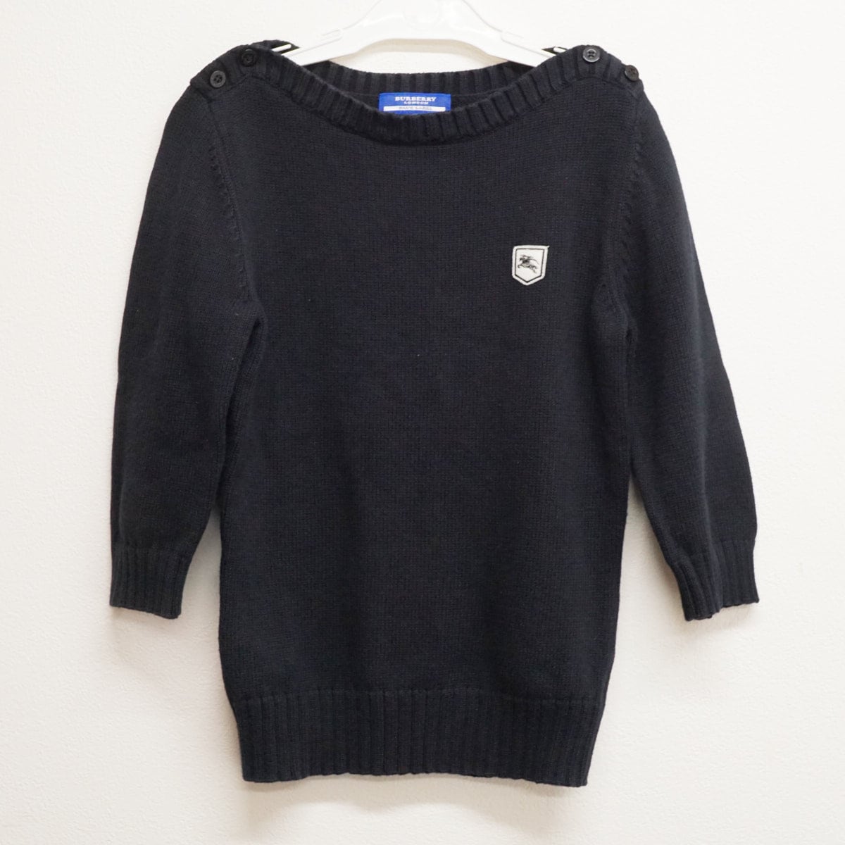 BURBERRY BLUE LABEL バーバリーブルーレーベル 七分袖ニットセーター USED品 肩ボタン トップス レディース ブラック サイズ38 X8317