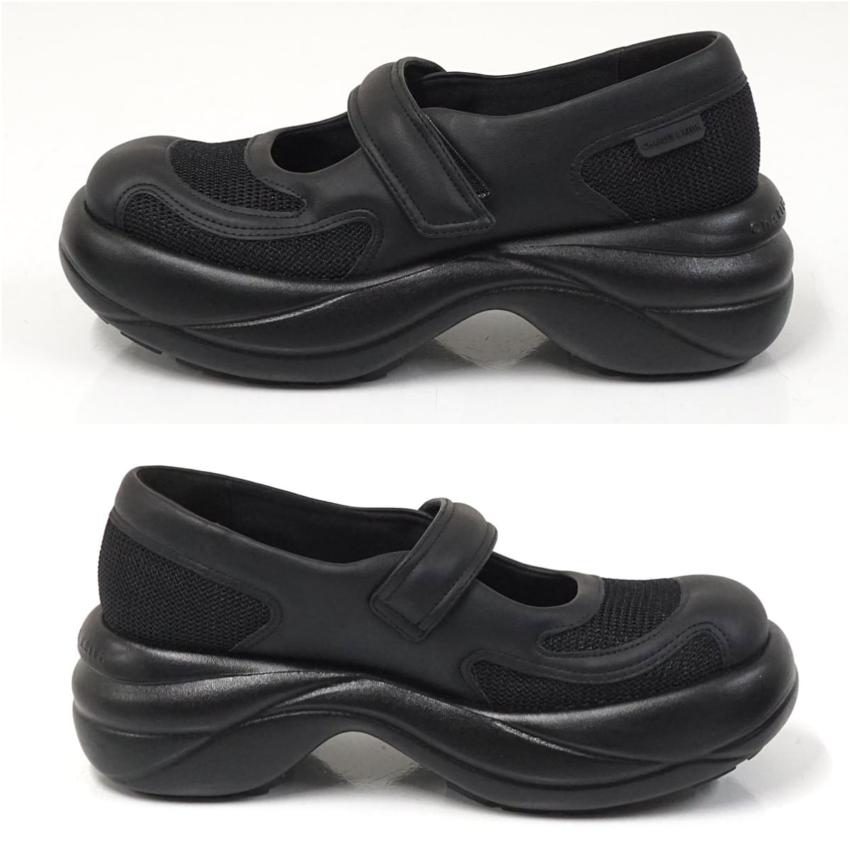 CHARLES&KEITH チャールズアンドキース メッシュ カーブプラットフォームメリージェーン 23.0cm USED美品 靴 シューズ ブラック X8342