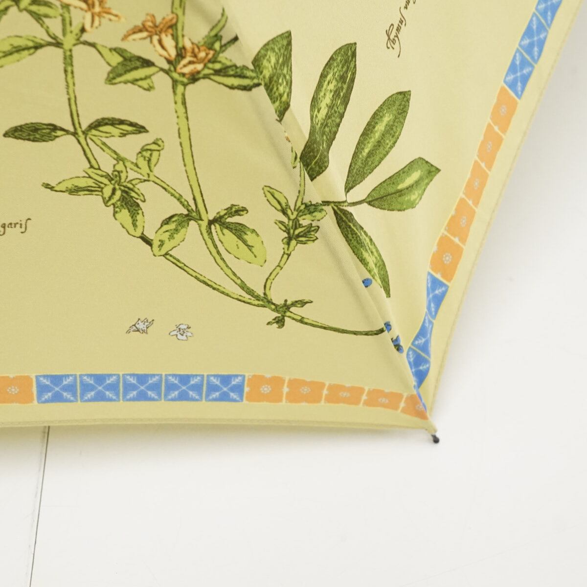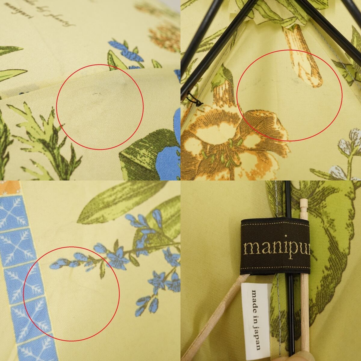 折たたみ傘 manipuri マニプリ USED美品 日本製 高級 アンティークフラワー 木製手元 晴雨兼用 ライトグリーン 53cm FS9467
