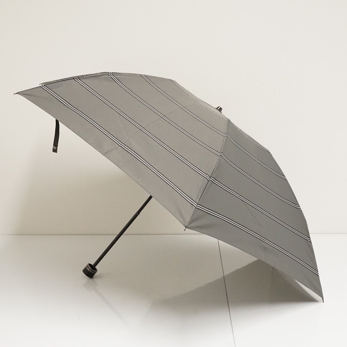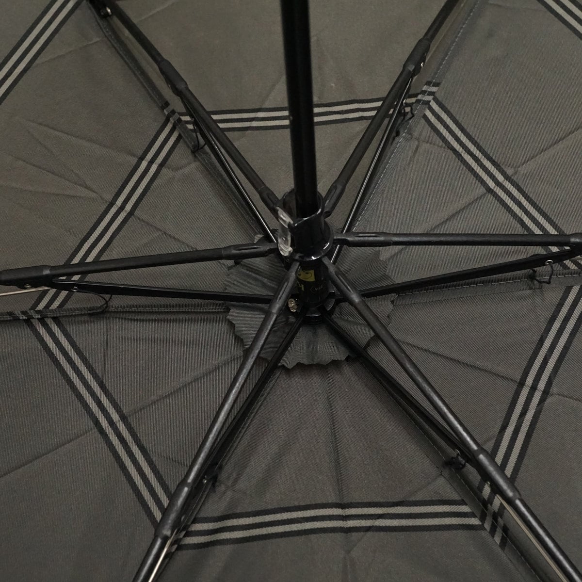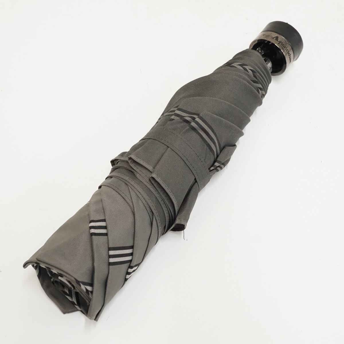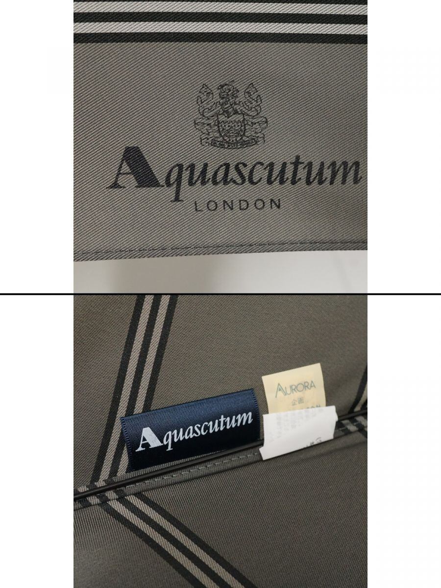 折りたたみ傘 Aquascutum アクアスキュータム USED美品 ボーダー レザー手元 ダークグレー グラス骨 58cm FA9468