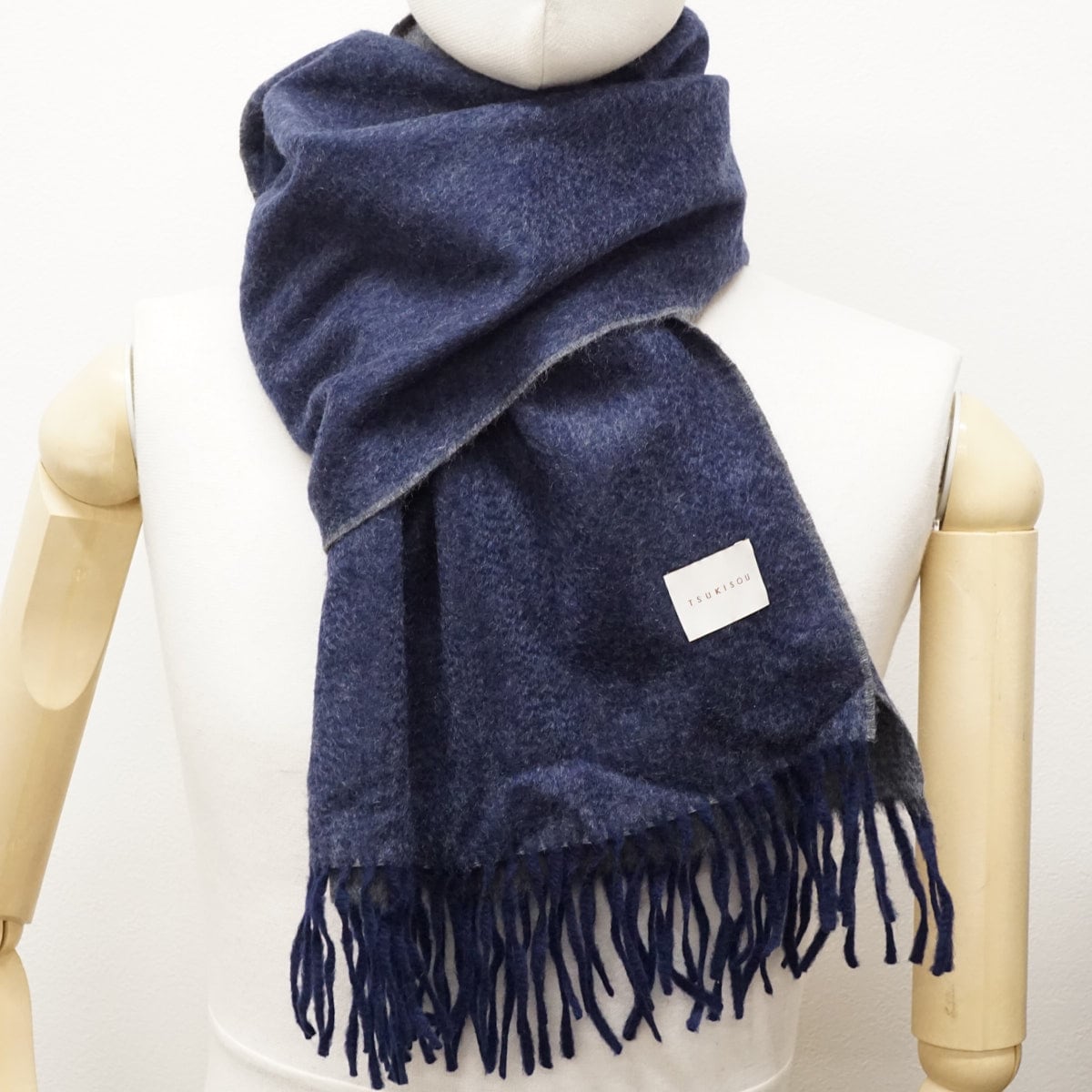 TSUKISOU ツキソウ マフラー ストール リバーシブル USED美品 カシミヤ ネイビー×ブラック ブランド 高級 X8390