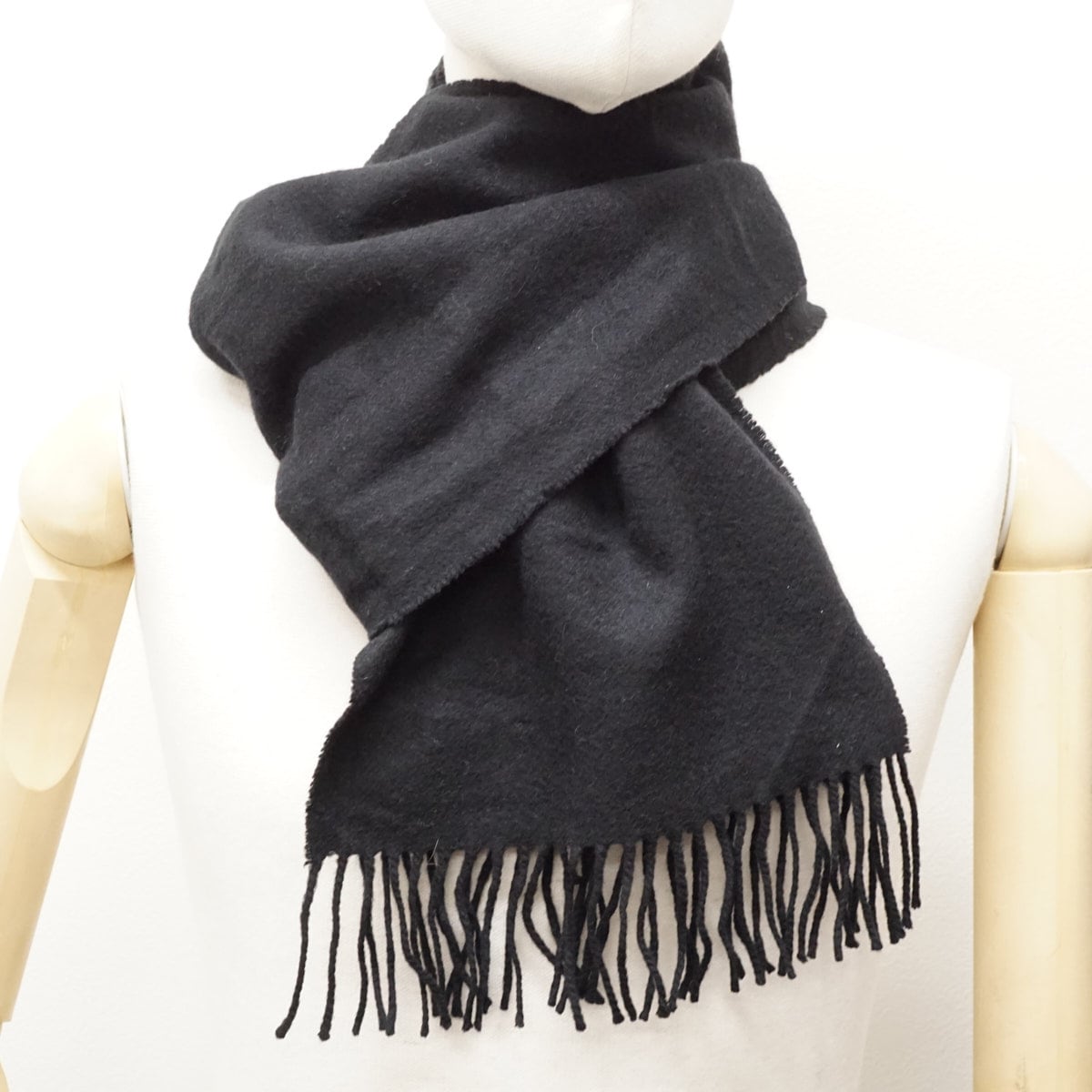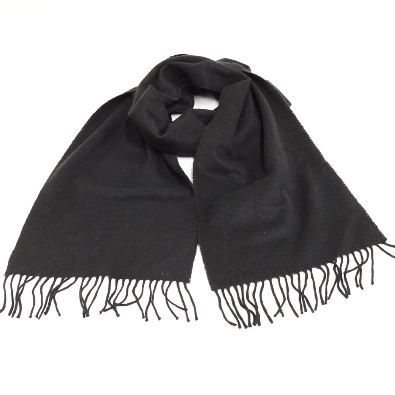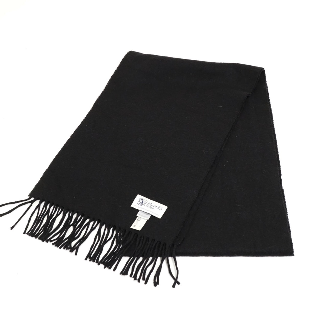 Johnstons of Elgin ジョンストンズ オブ エルガン 100%ピュアカシミヤストールマフラー USED品 ブラック 無地 ブランド シンプル X8391