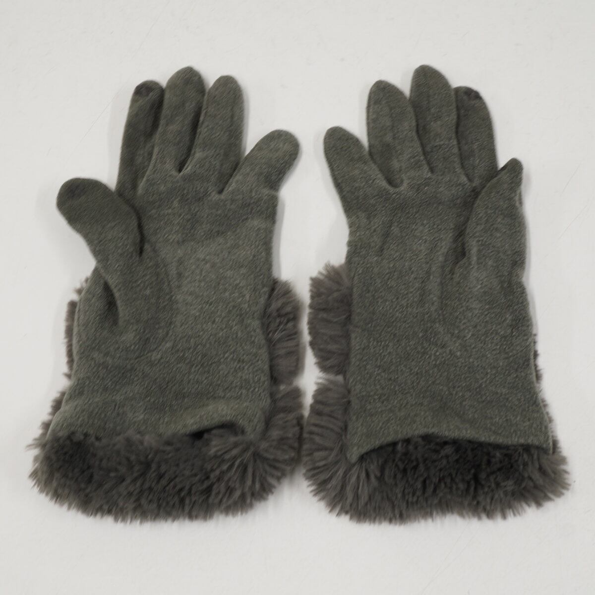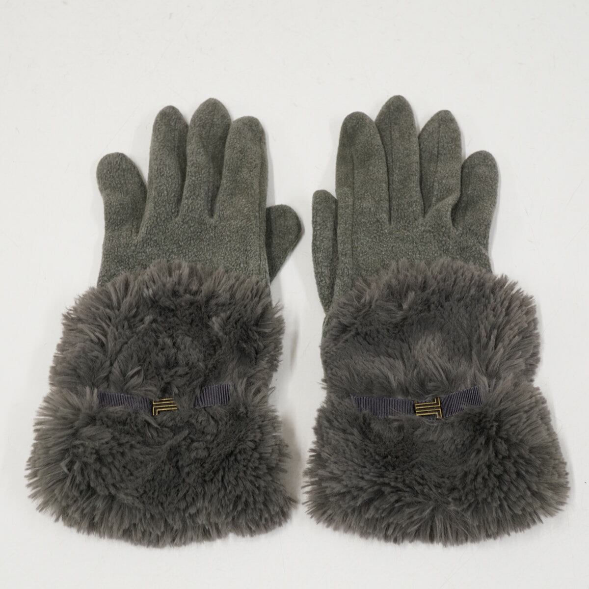 手袋 LANVIN ランバン USED品 フェイクファーグローブ ブランド レディース グレー チャーム付き X8404