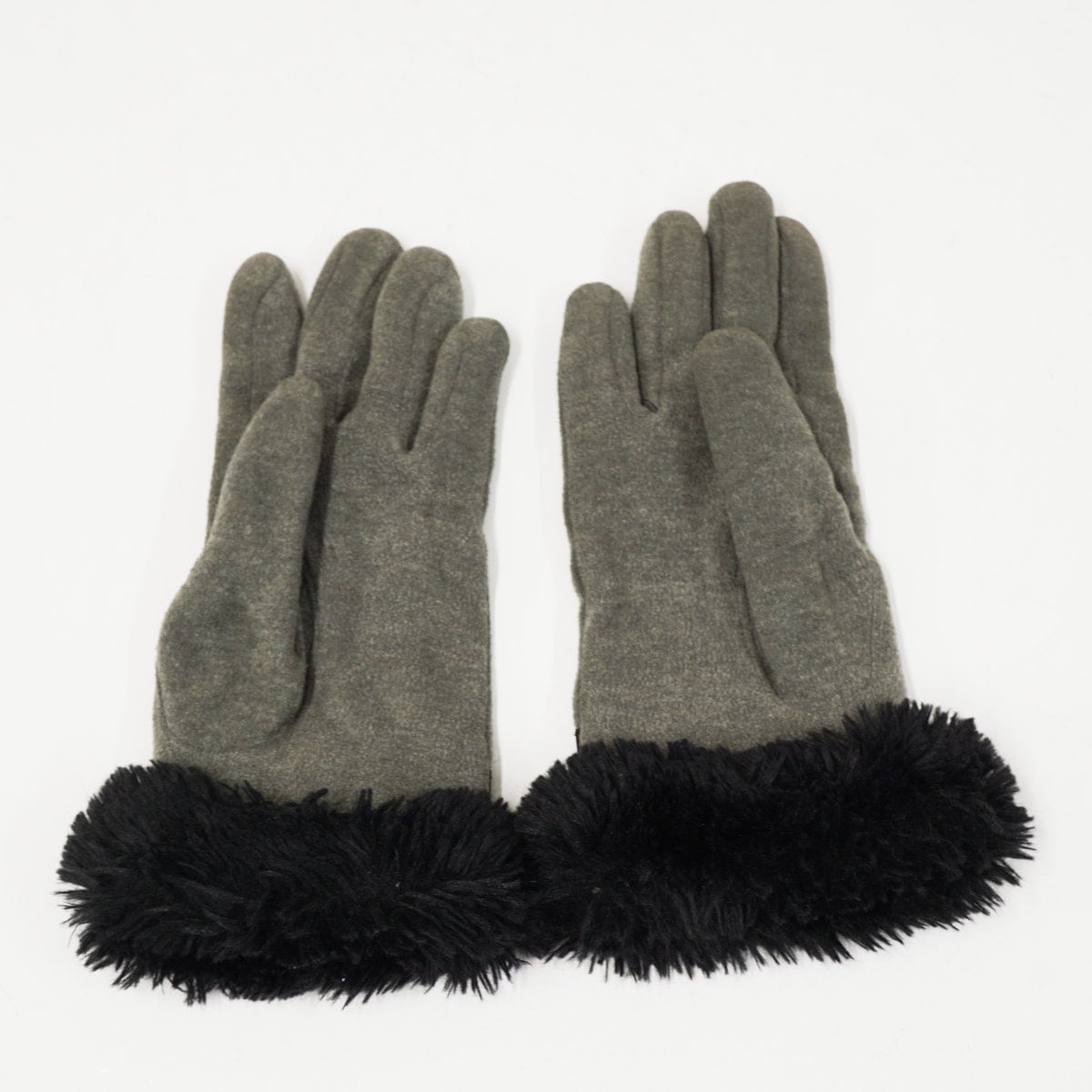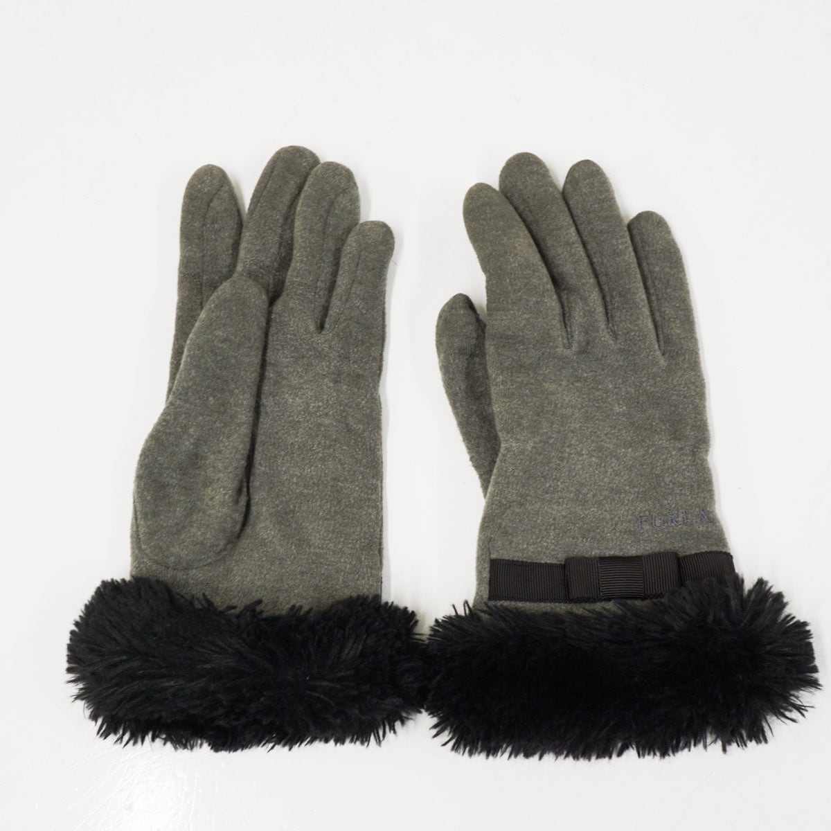 手袋 FURLA フルラ USED品 レディース グローブ ファー付き グレー ブランド リボン X8405