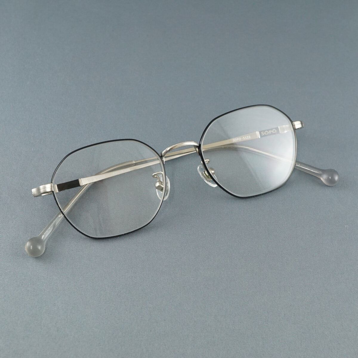 眼鏡 SOPO ソポ USED美品 SOPO-5122 ブラック シルバー メタルフレーム アイウェア メガネ 中古 X8388