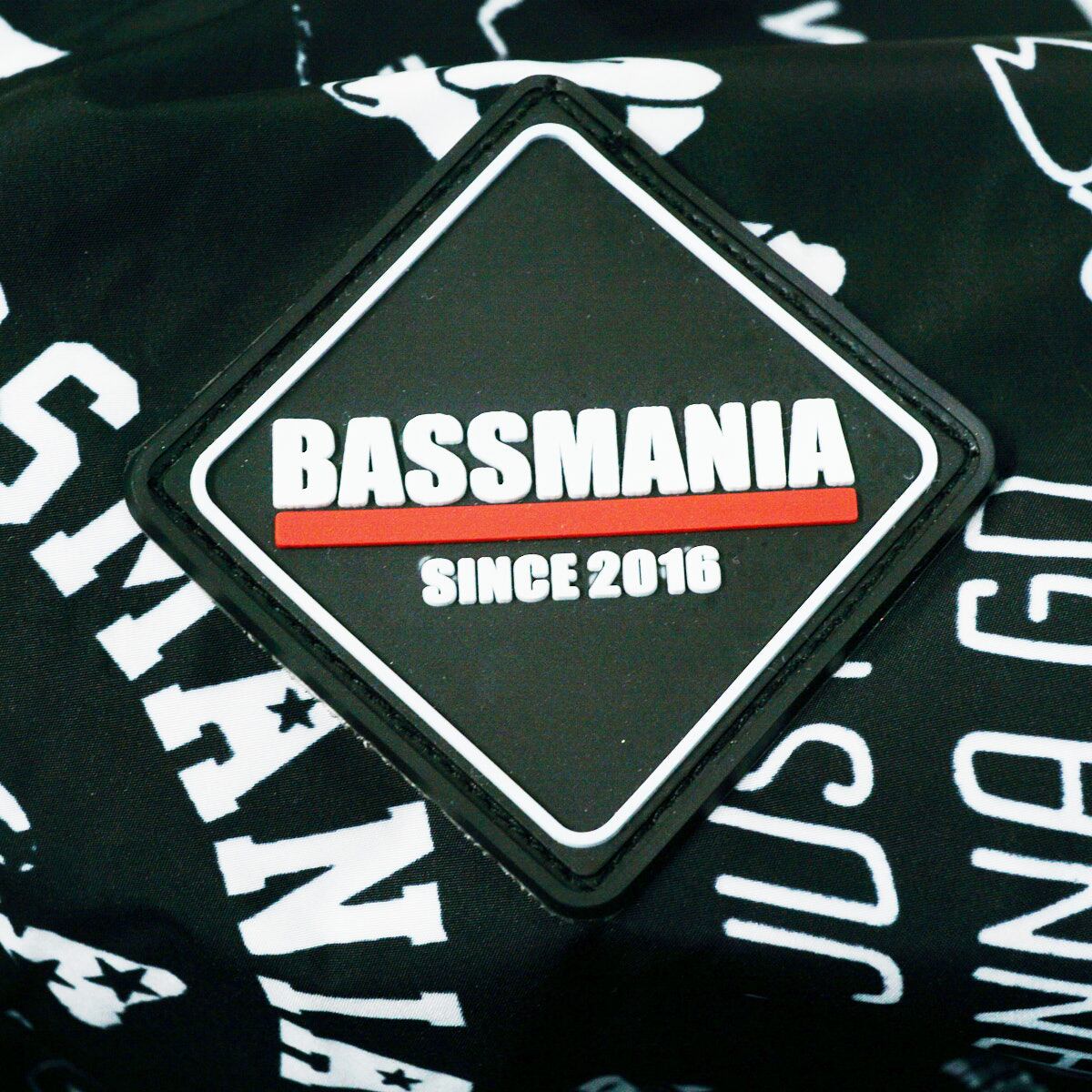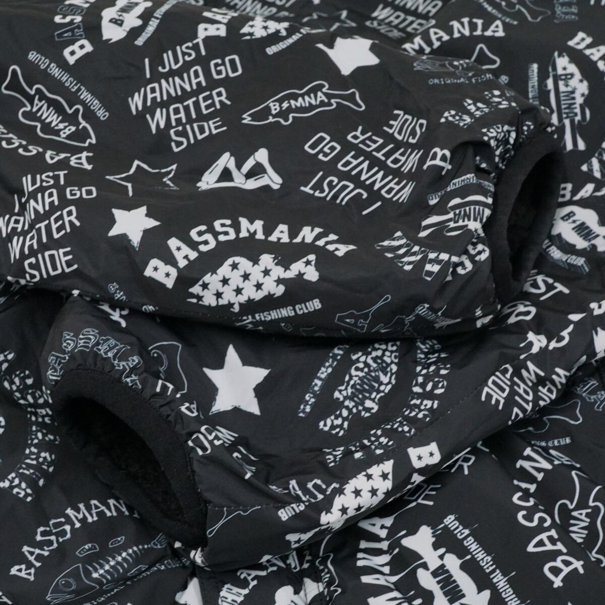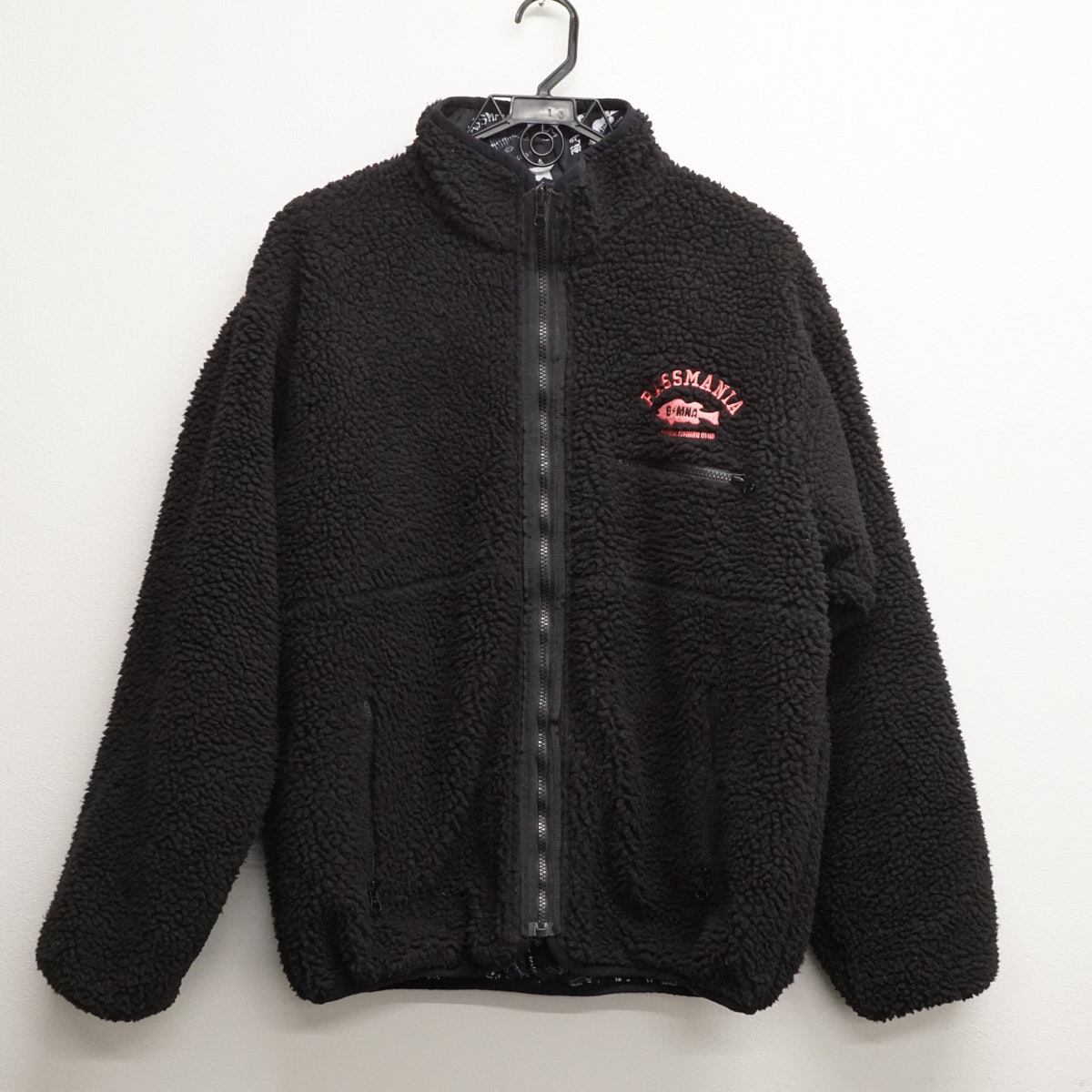 BASSMANIA バスマニア リバーシブルボアジャケット USED品 限定生産 アーチ ロゴ 総柄 釣り アングラー バサー メンズ Mサイズ X8418