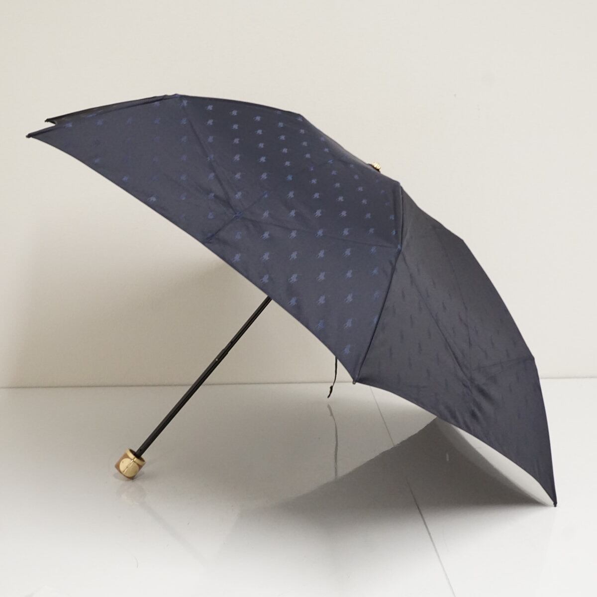 折りたたみ傘 POLO RALPH LAUREN ポロラルフローレン USED品 紳士 ジャガード ポロポニー 総柄 ネイビー シンプル 55cm FS9474