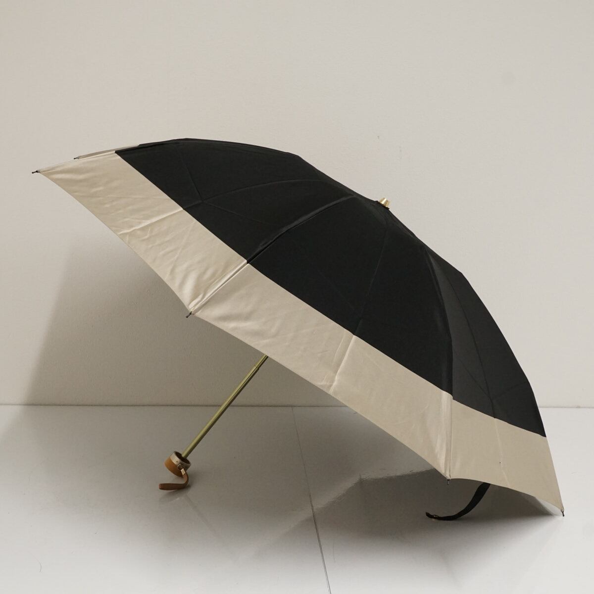 ブラック×ベージュのバイカラーで、シンプルなデザインの折傘です。