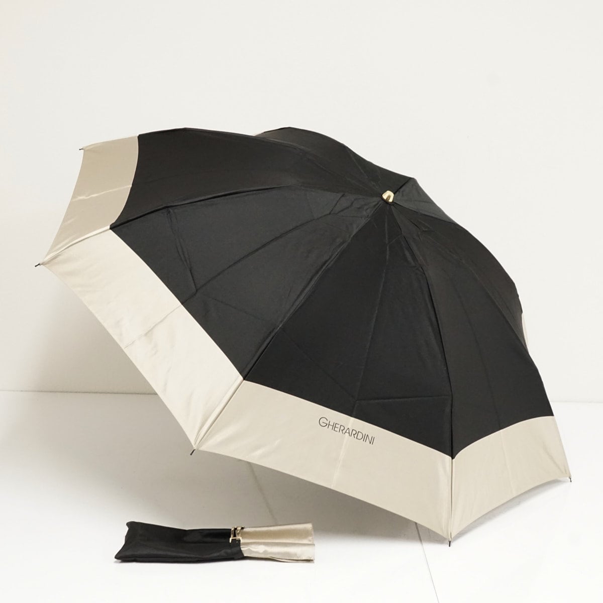 折りたたみ傘 GHERARDINI ゲラルディーニ USED美品 バイカラー ブラック×ベージュ 収納袋付き 55cm FA9475