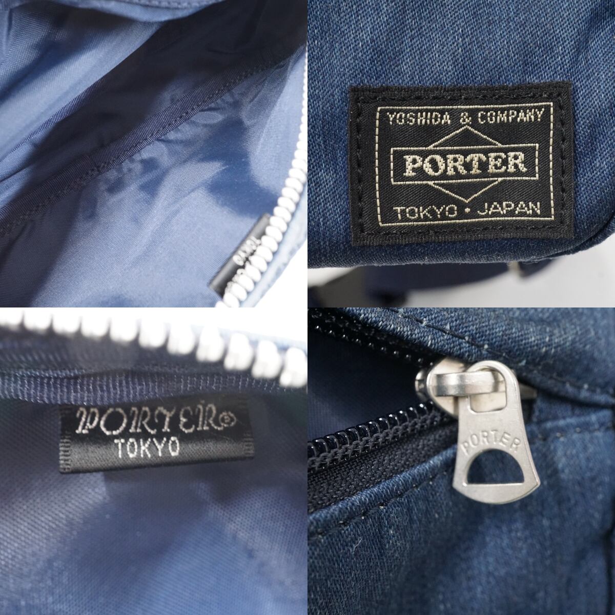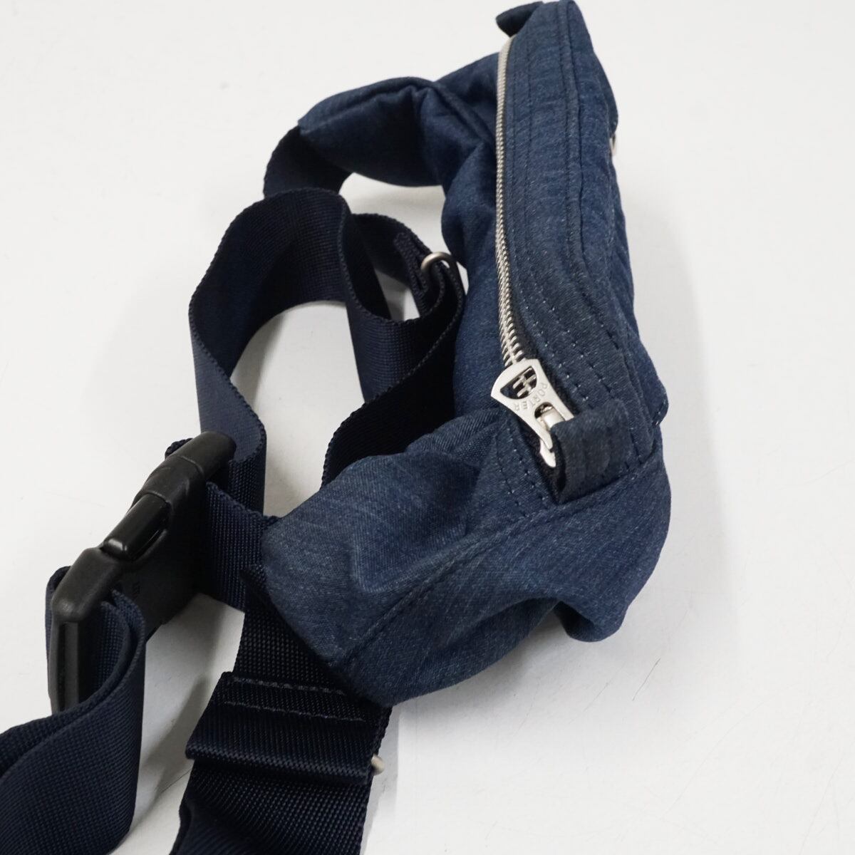 PORTER ポーター 吉田カバン デニム ウエストバッグ(S) USED美品 ボディバッグ メンズ レディース 軽量 横型 斜め掛け X8432
