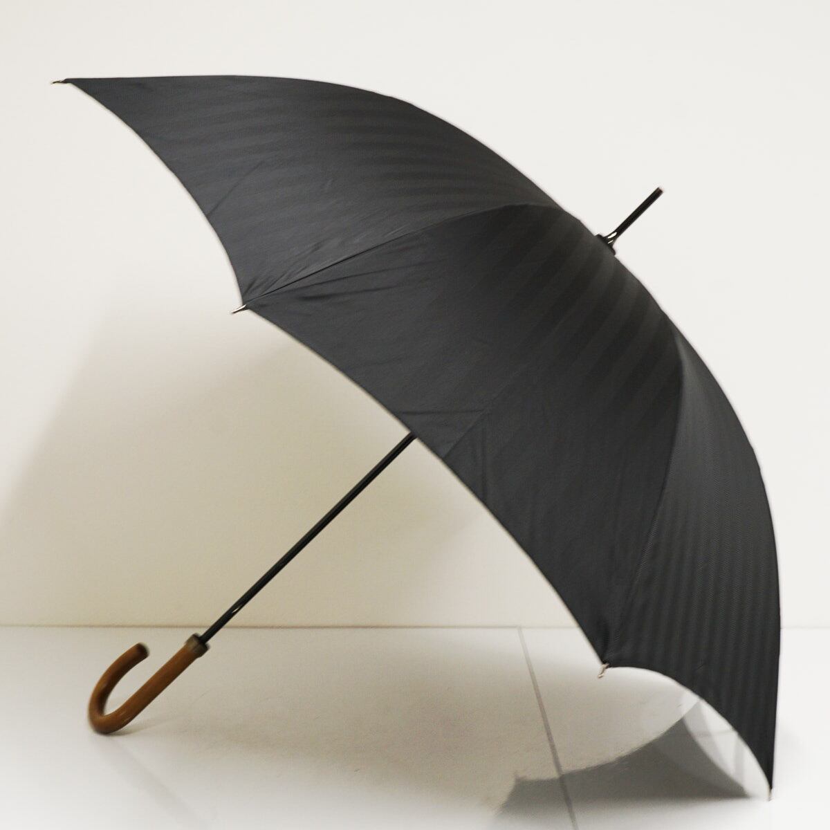 傘 槇田商店 USED美品 ブラック シンプル 高級 木製手元 紳士傘 65cm S3363