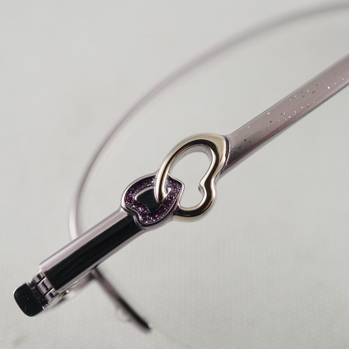 上品なパープルのカラーリングにテンプルのラメやハートモチーフなど大人のかわいらしさをプラスしたおしゃれなフレームです。