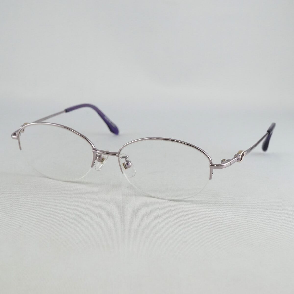 眼鏡 La Elemilet LE-6005 USED美品 パープル ハート ラメ オーバル レディース 軽量 上品 かわいい アイウェア 中古 X8516