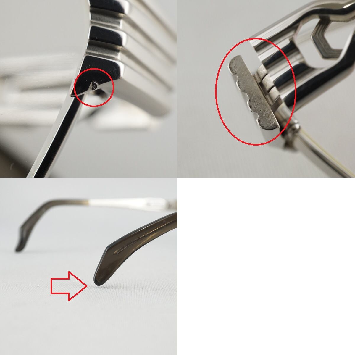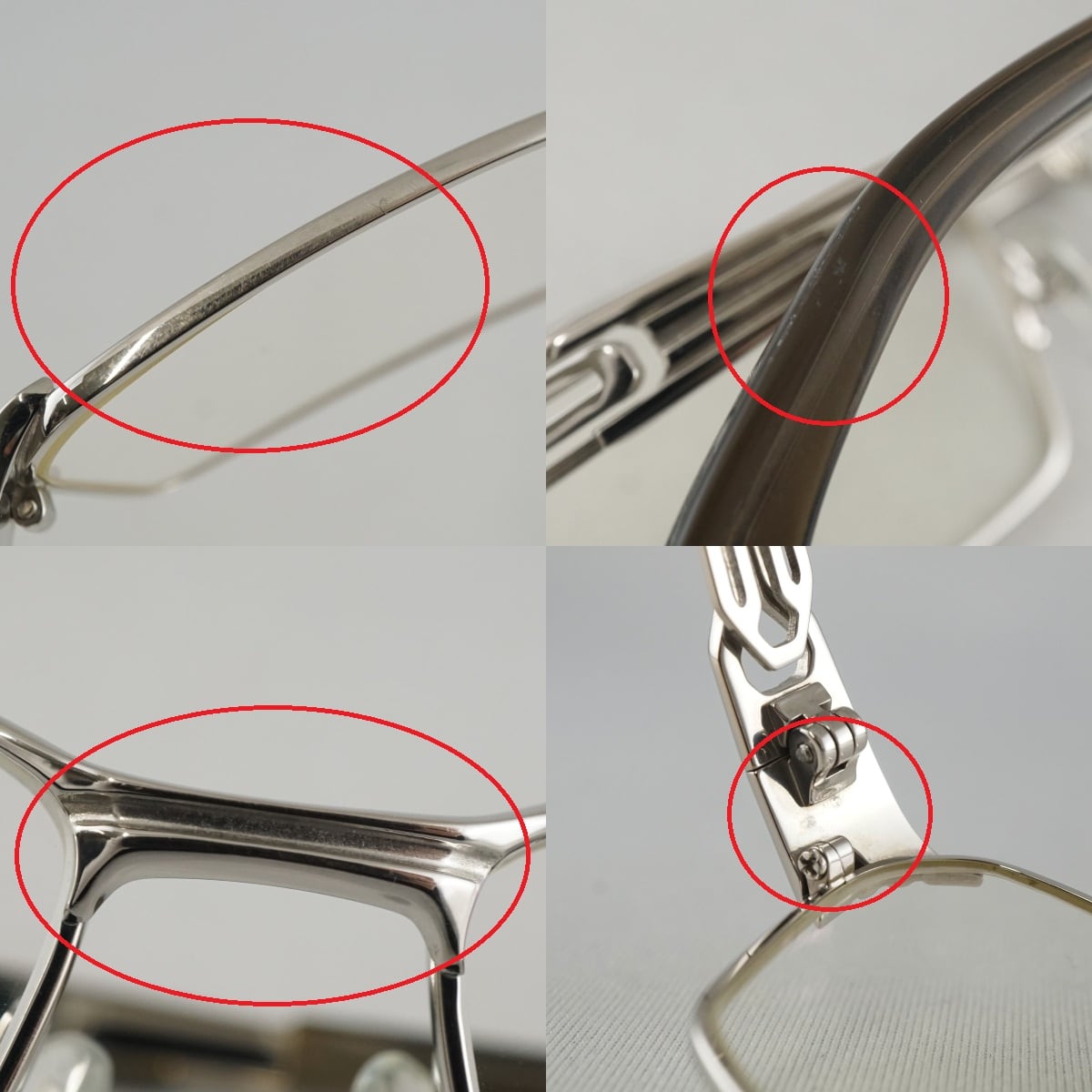 ※リム、テンプル、モダン、ヨロイにスリキズ、小キズ、薄汚れなどがあります。(一部を画像にてご確認ください。)
