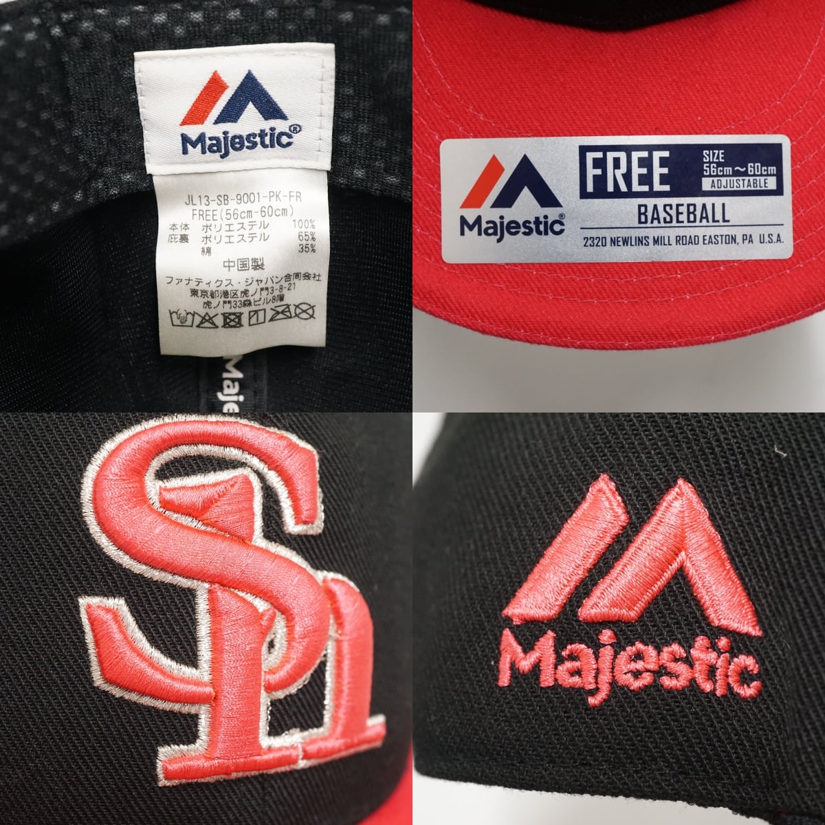 福岡ソフトバンクホークス 野球 応援グッズ 帽子 ブラック×ピンク USED品 Majestic フリーサイズ セット アジャスタブル X8569